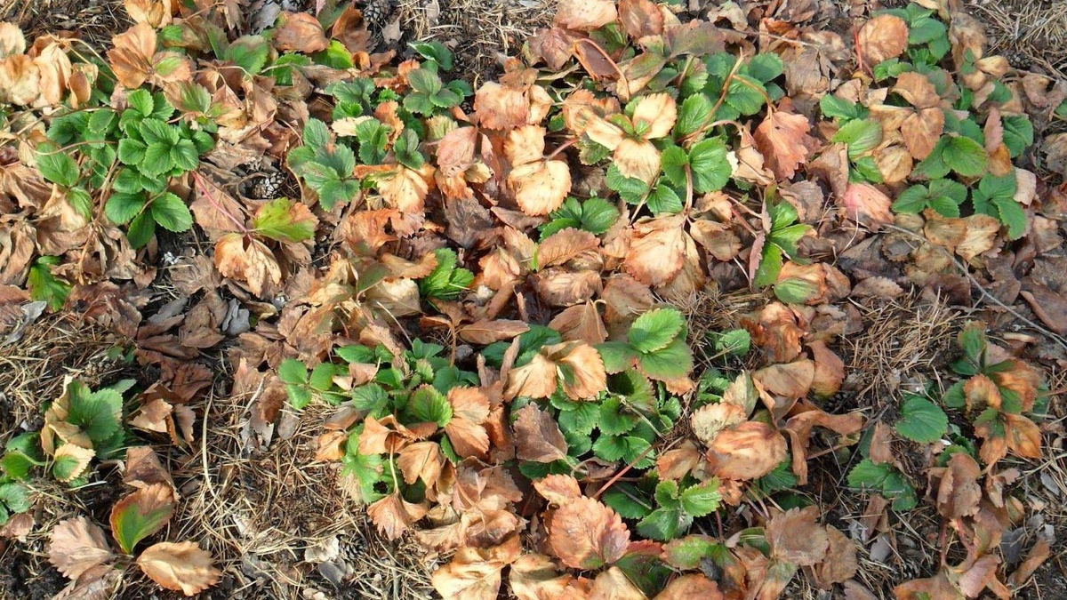 Первым делом нужно провести уборку. Важно удалять всё сухое и подгнившее, которое не приносит пользы и занимает место. Зелёные листья, даже если они старые, трогать не стоит: они продолжают фотосинтезировать и жизненно важны для кустов. Оперативно убираются также старая мульча, где после зимы скапливаются вредители. После очистки грядки необходимо аккуратно рыхлить почву на глубину до 5 см, чтобы не повредить корни.