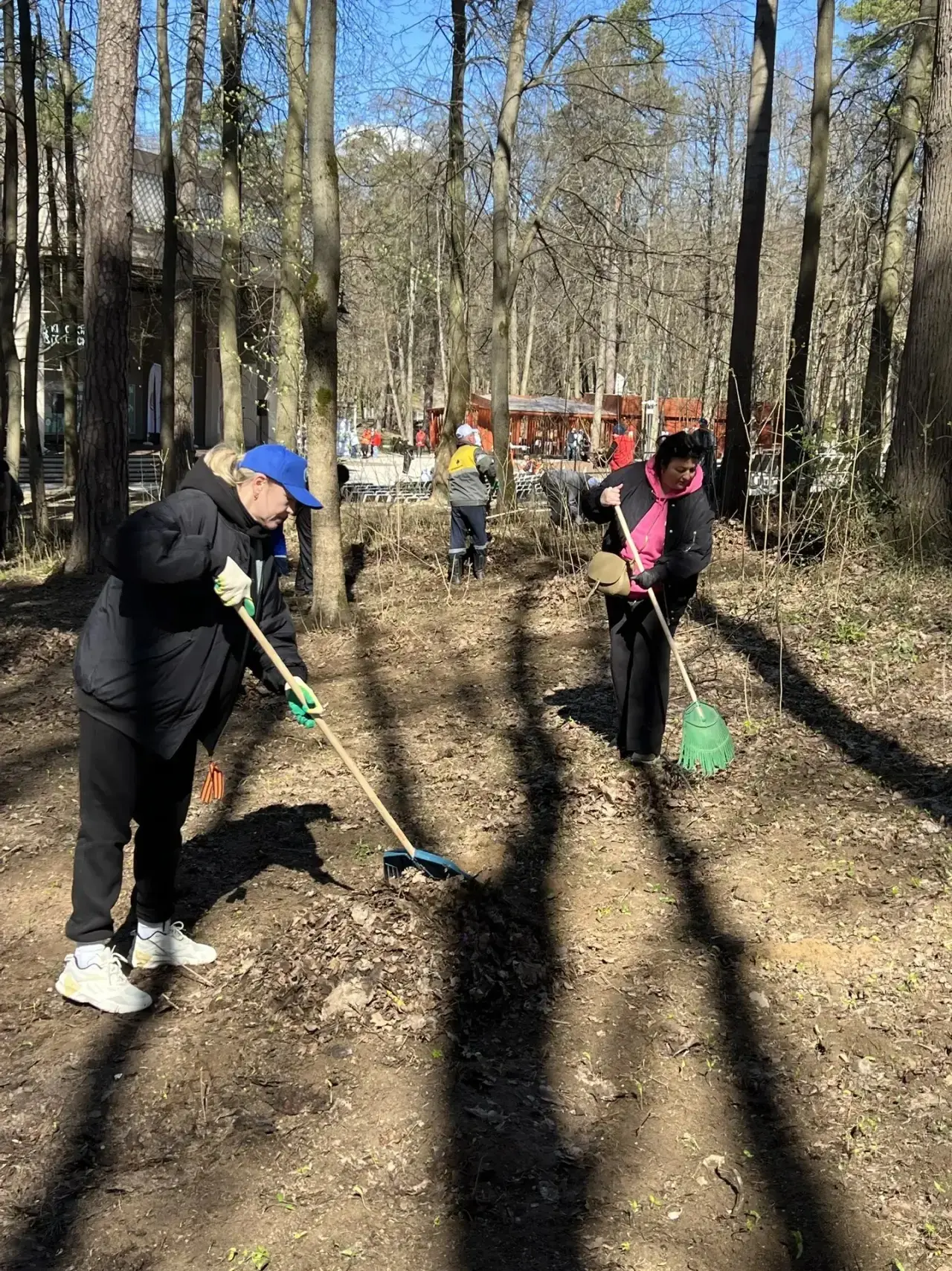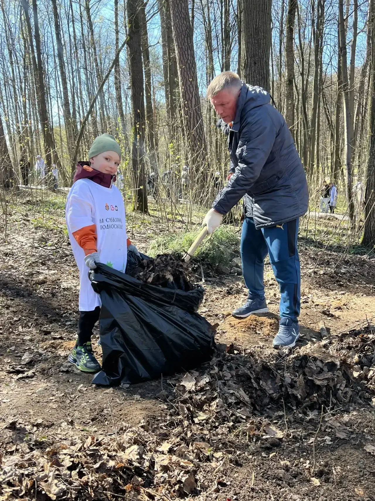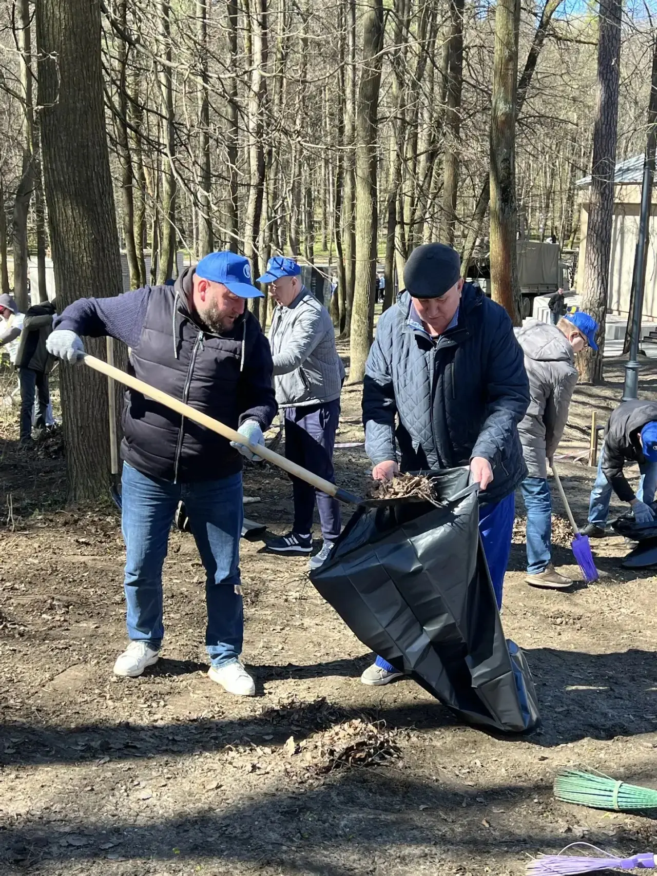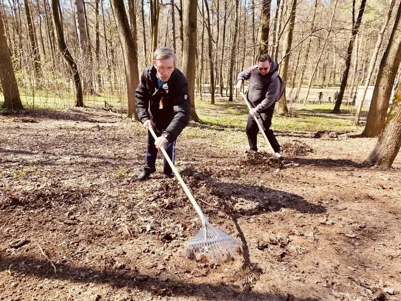 Во время субботника убрали мусор и сухостой, обрезали поврежденные ветки. Всего собрано и упаковано несколько сотен килограммов отходов.