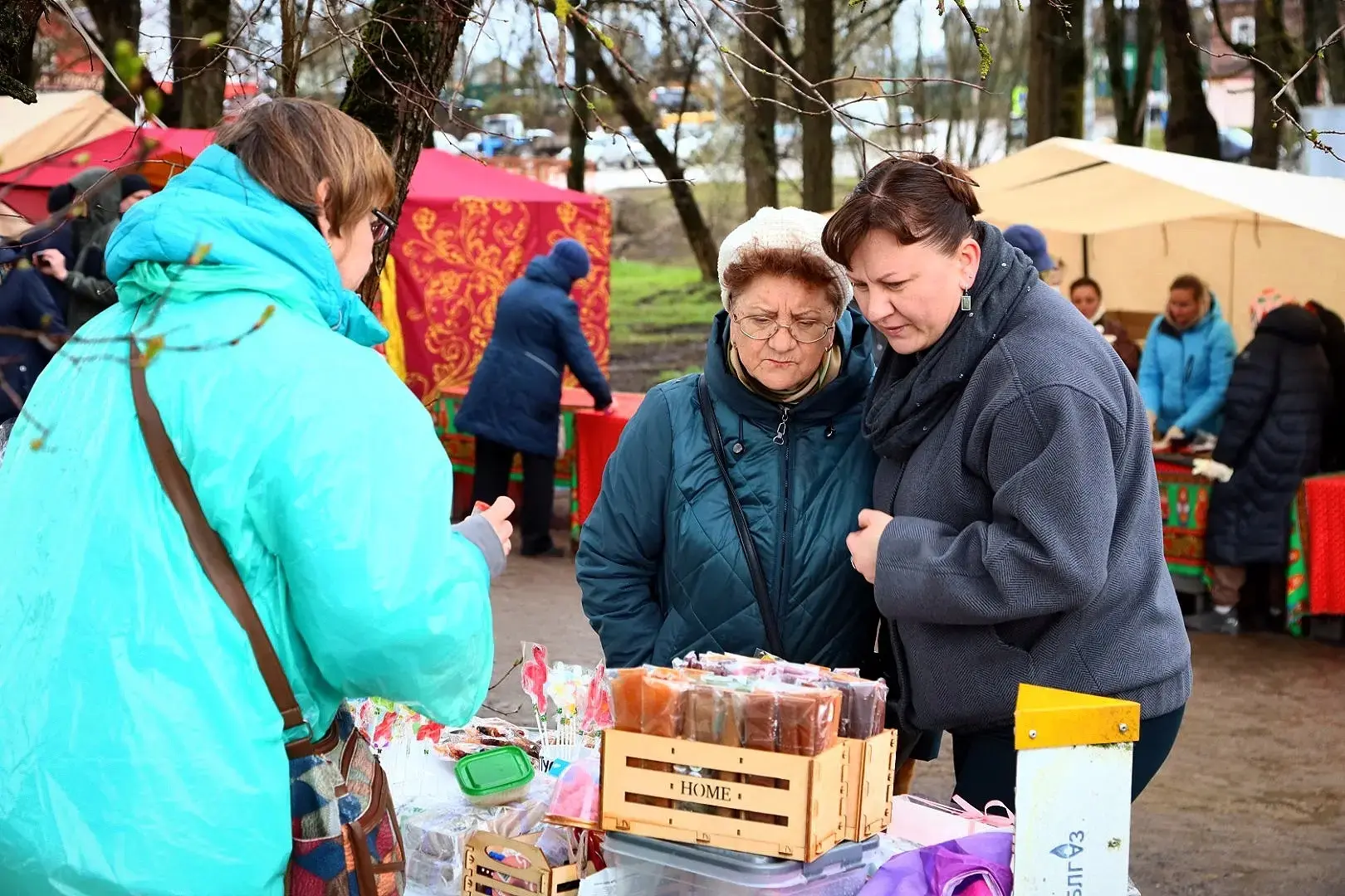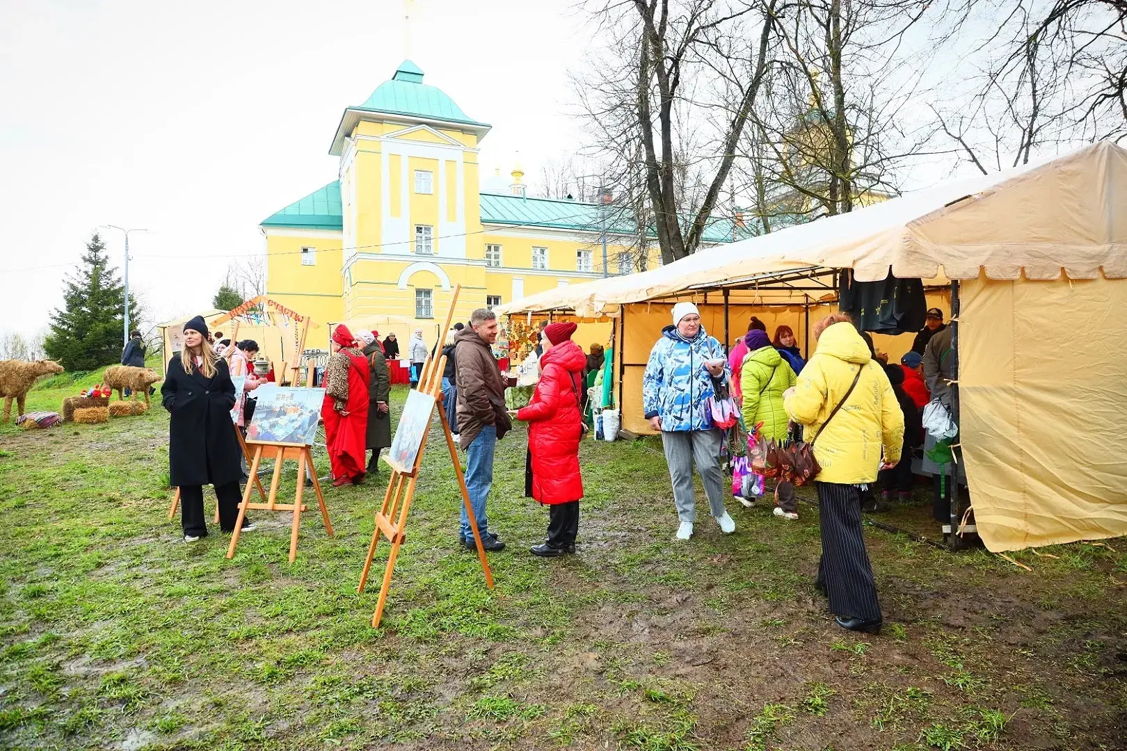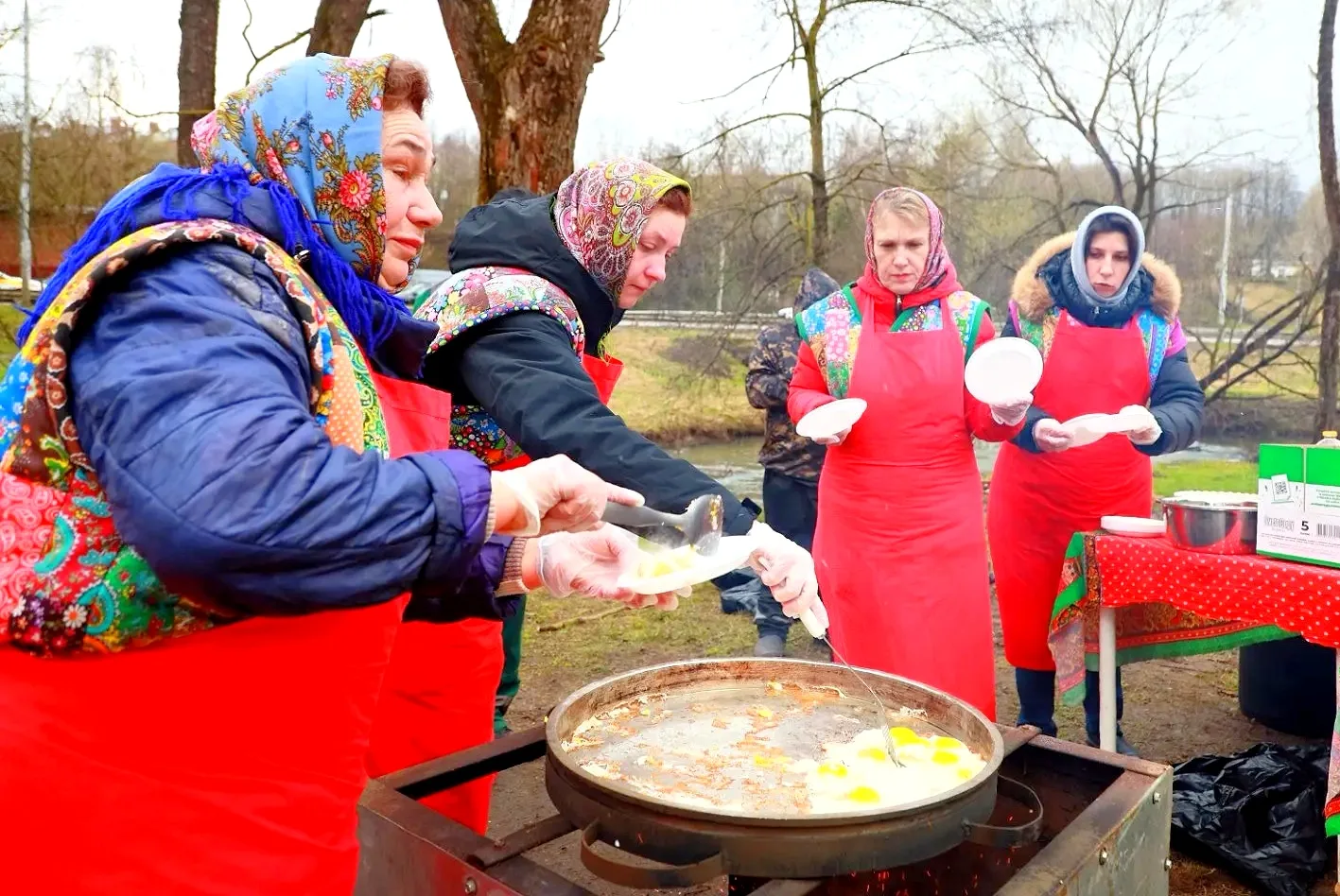 Дождь в самом начале не помешал. Праздник ещё продолжается. В программе: сбор гуманитарной помощи бойцам СВО, концерт, мастер-классы по керамике, росписи фарфора, изготовлению народной игрушки и столярному делу, выставка-ярмарка работ художников, фермеров и ремесленников Хотьково и всего округа, а также игры, хороводы, традиционная яичница, каша и чаепитие.
