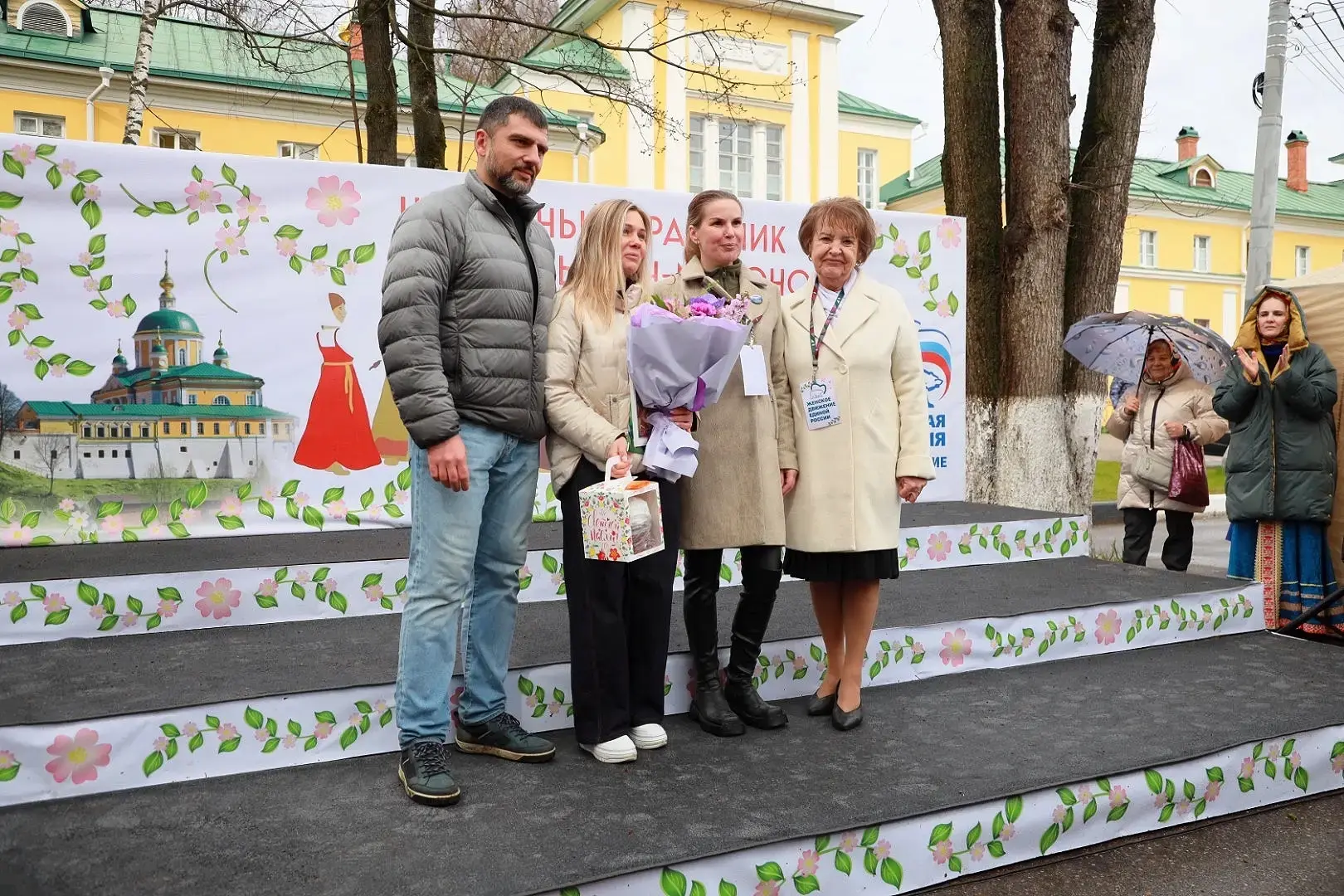 Всех женщин поздравил депутат Госдумы Сергей Пахомов. Он сказал: «Хочу поблагодарить всех женщин за всё, что вы делаете для нас, мужчин. Мы сегодня слушали песню, и там были такие слова: "В каждой женщине есть мироносица". Именно на этом и держится мир испокон веков».