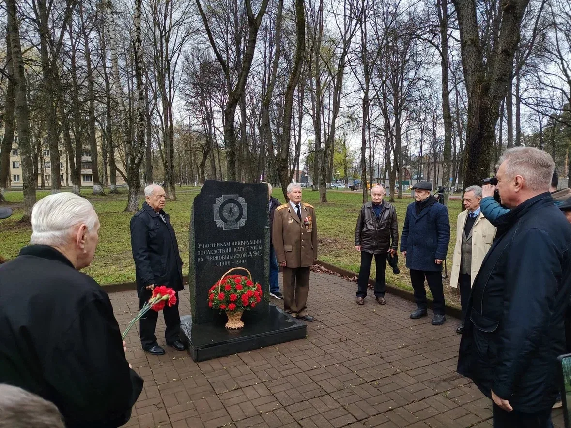 У памятника участникам ликвидации последствий катастрофы на ЧАЭС очевидцы событий 1986 года и все пришедшие на акцию возложили цветы и почтили память ушедших коллег минутой молчания.