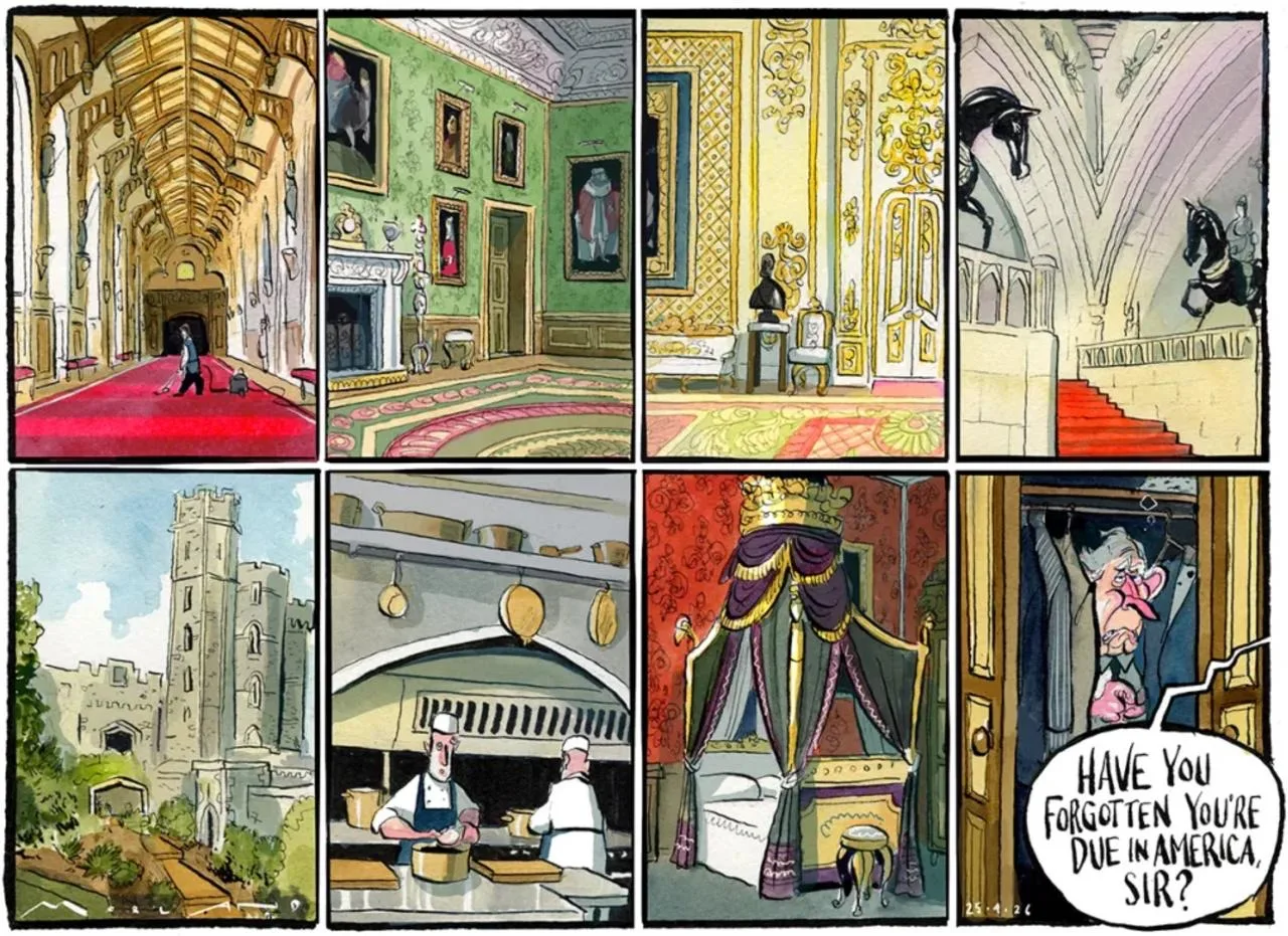 The Sunday Times полагает, что завтра королька Чарльза будут разыскивать по всем помещениям его дворца, а он будет прятаться в шкафу, чтобы только не ехать к Трампу в гости.