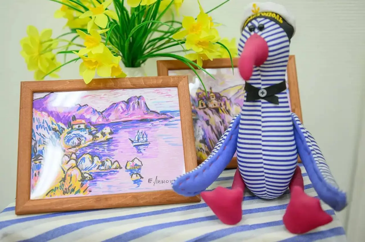 «В основном это графика и шесть живописных работ. Большая часть экспозиции посвящена пейзажам Крыма и Севастополя. В преддверии 9 Мая, поскольку Севастополь – город-герой, мы не обошли стороной и эту тематику. Две картины изображают бухты Севастополя с кораблями, в числе которых работы «В родной гавани» и виды Приморского бульвара с катерами и нашими севастопольскими крепостями».