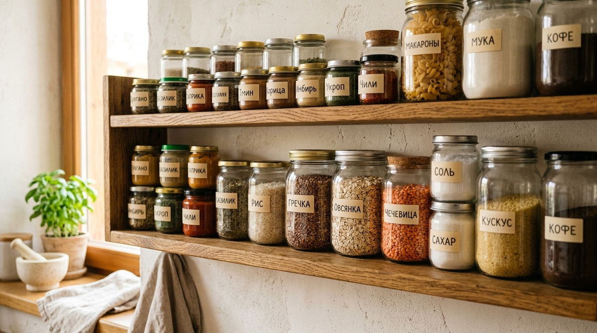- Пустые стеклянные банки. Часто игнорируемые, они идеально подходят для хранения мелких предметов: специй, булавок и даже остатков краски. Их стойкость и возможность стерилизации делает их идеальным выбором для организации пространства.