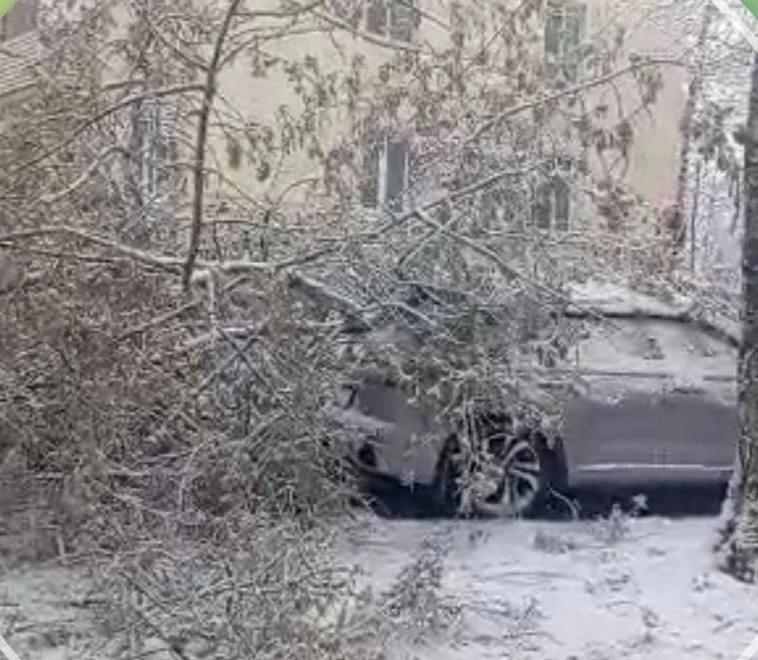 Некоторые деревья из-за снегопада упали на припаркованные авто в Москве и Подмосковье. Непогода продлится до завтрашнего вечера