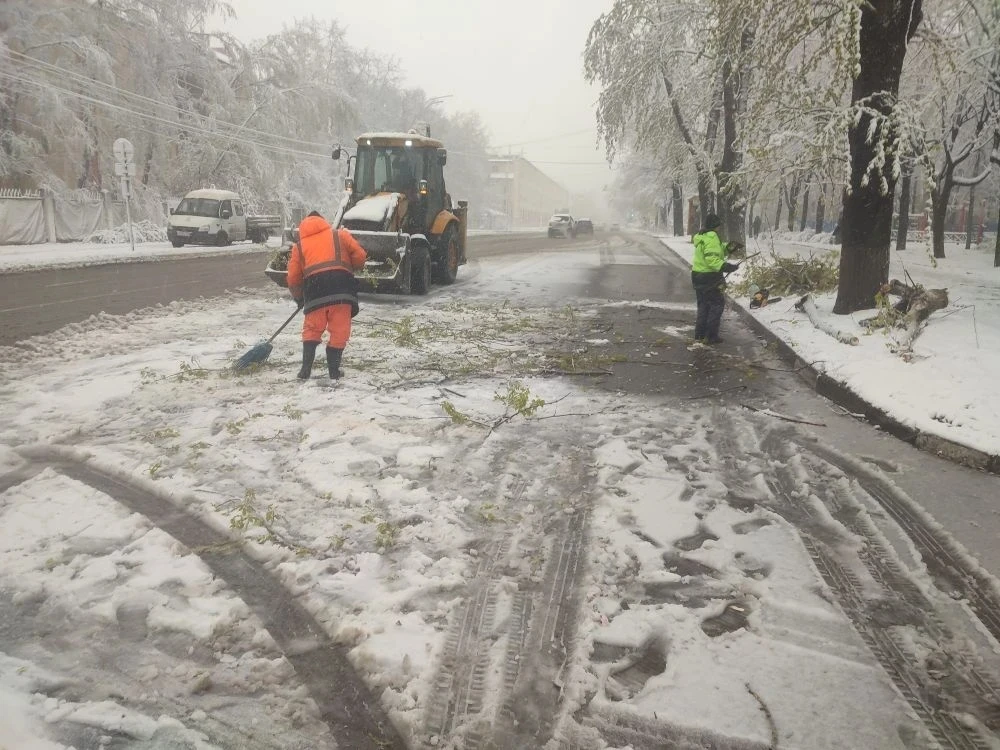 Специалисты расчищают проезжую часть и тротуары от снега, убирают поваленные деревья. На этот фронт работ дополнительно привлечены силы и средства.