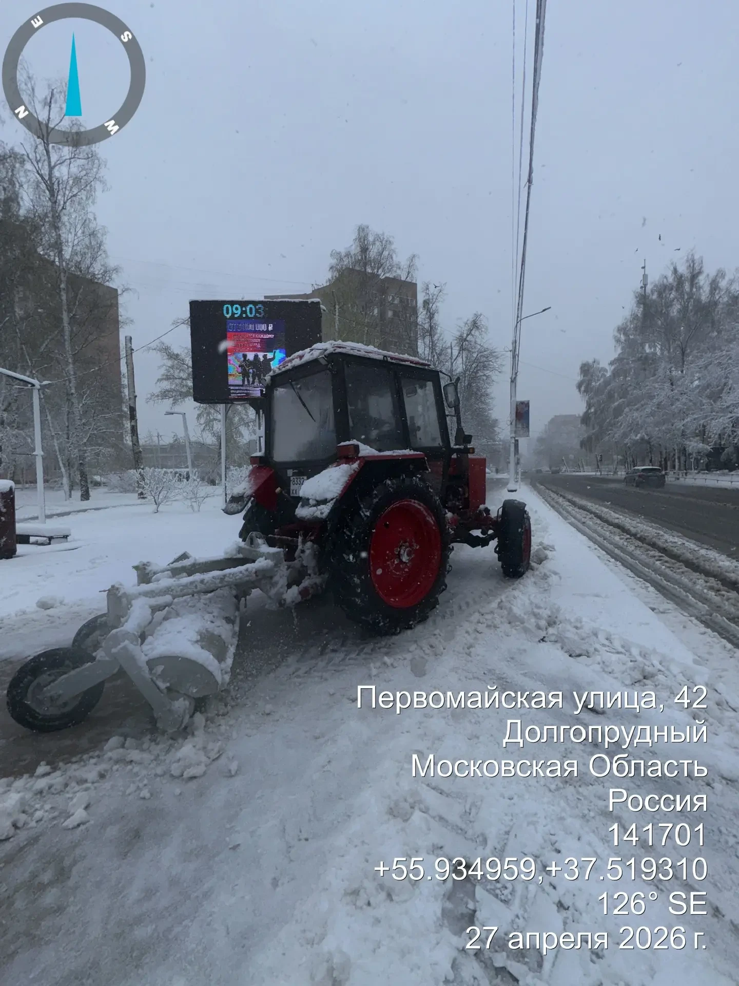 Зима этой весной удалась: в Долгопрудном вновь чистят дороги и общественные территории от снега