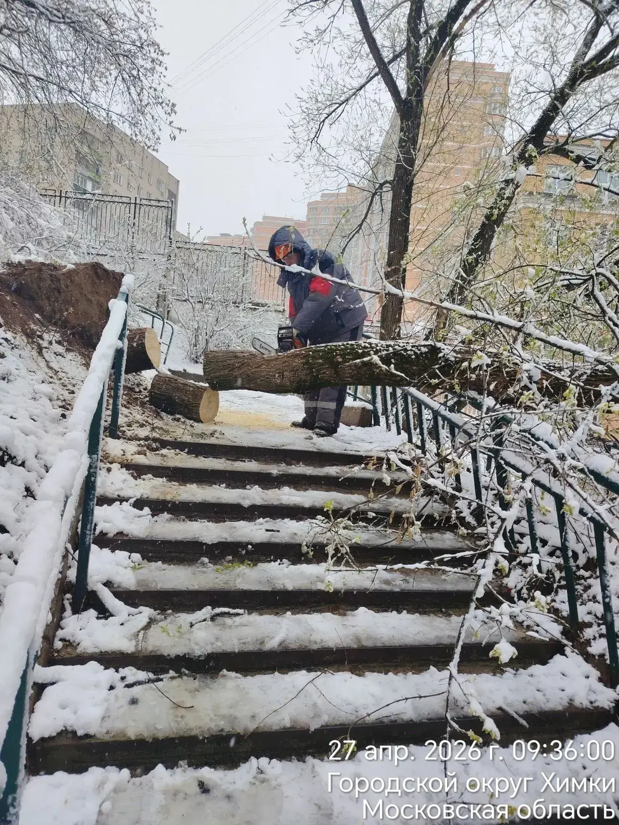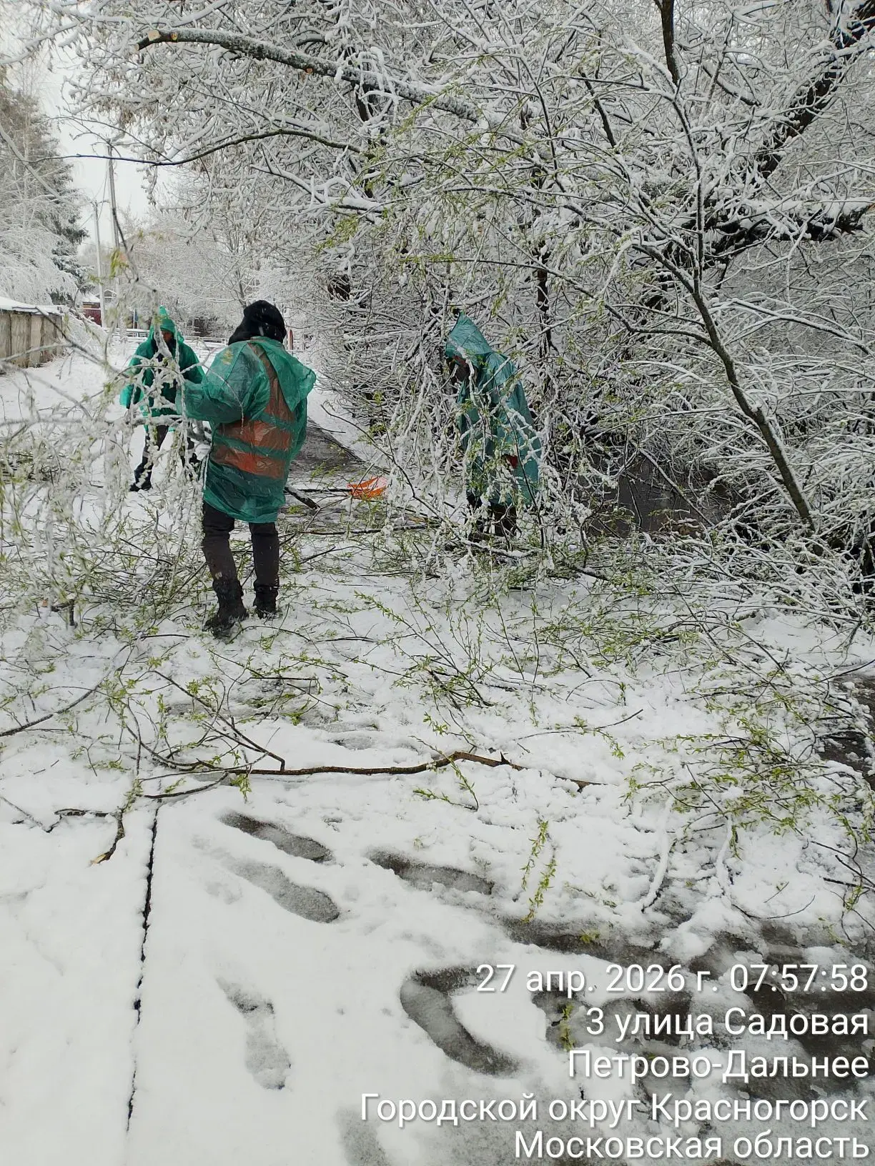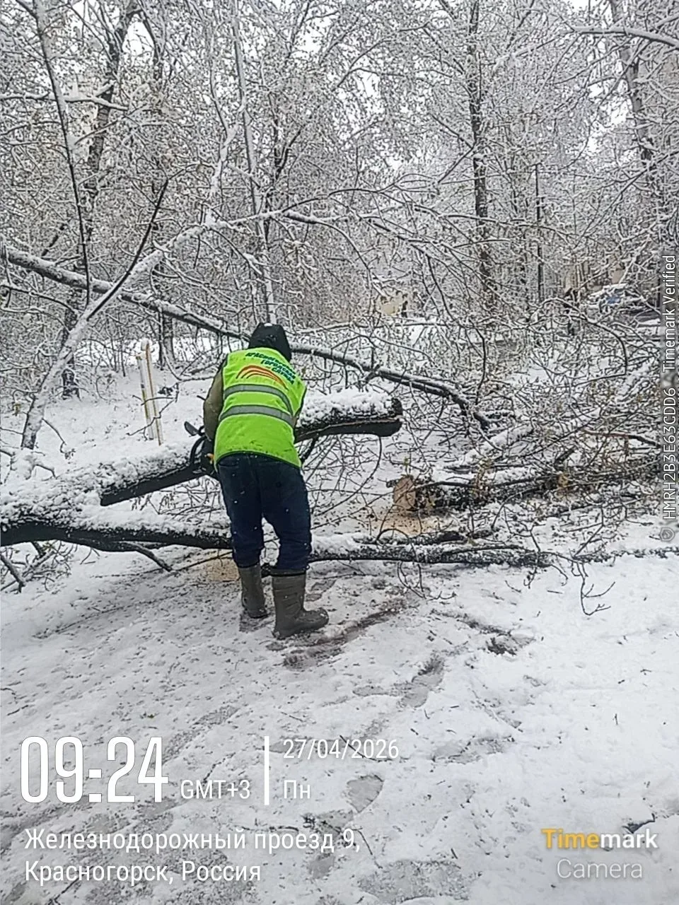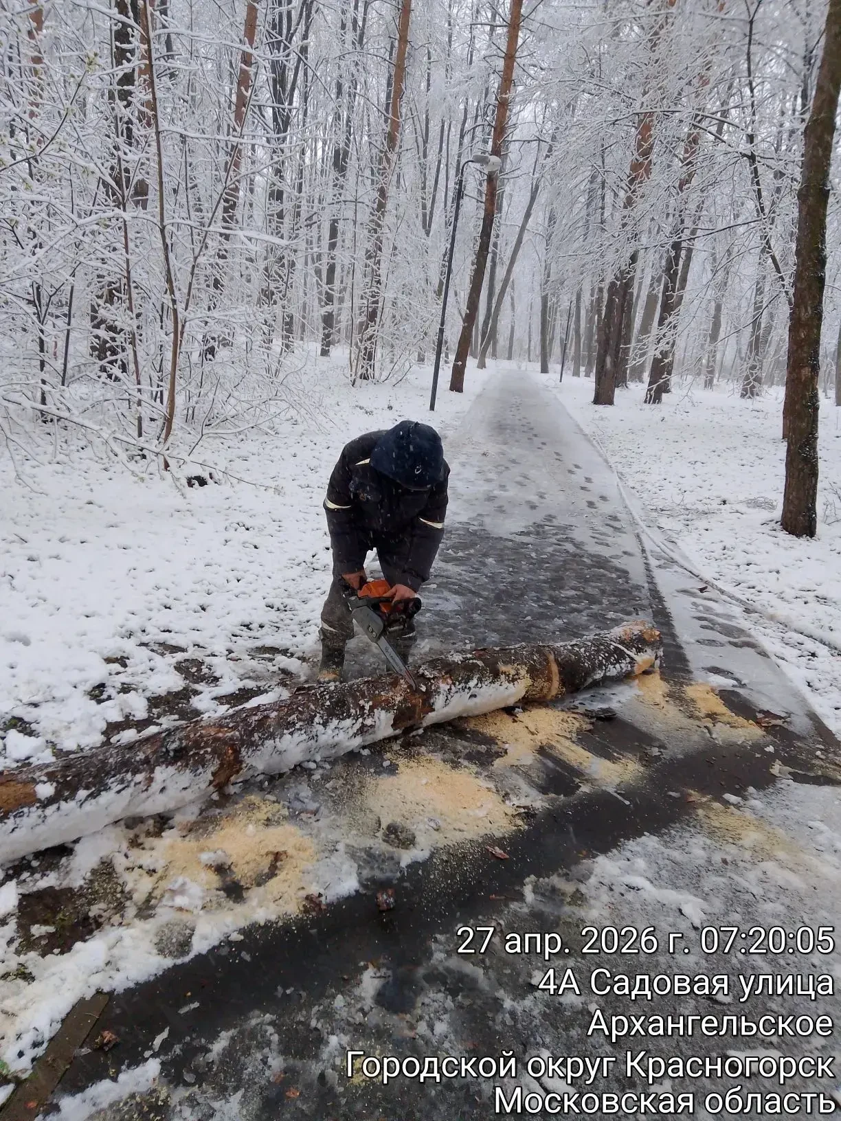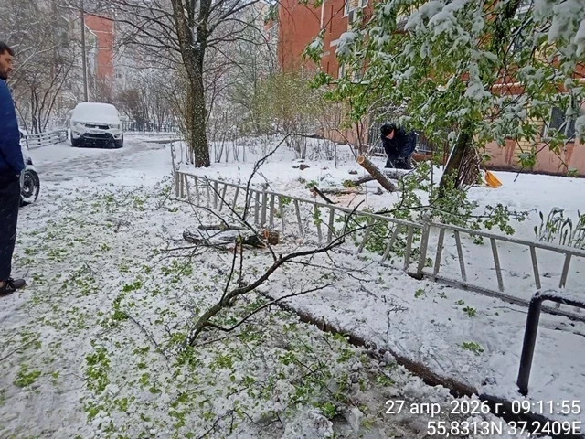 Из-за выпадения тяжелого мокрого снега на территории округа зафиксированы обрывы ветвей и падение деревьев. Специалисты работают на всех пострадавших участках, обеспечивая безопасность дорожного движения и проходов.