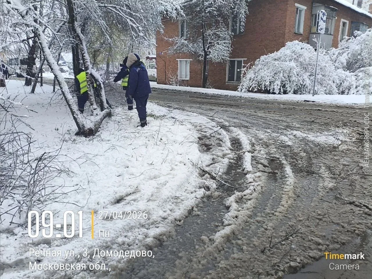 С утра профильные службы уже на маршрутах: распиливают, вывозят, освобождают проезды и тротуары.