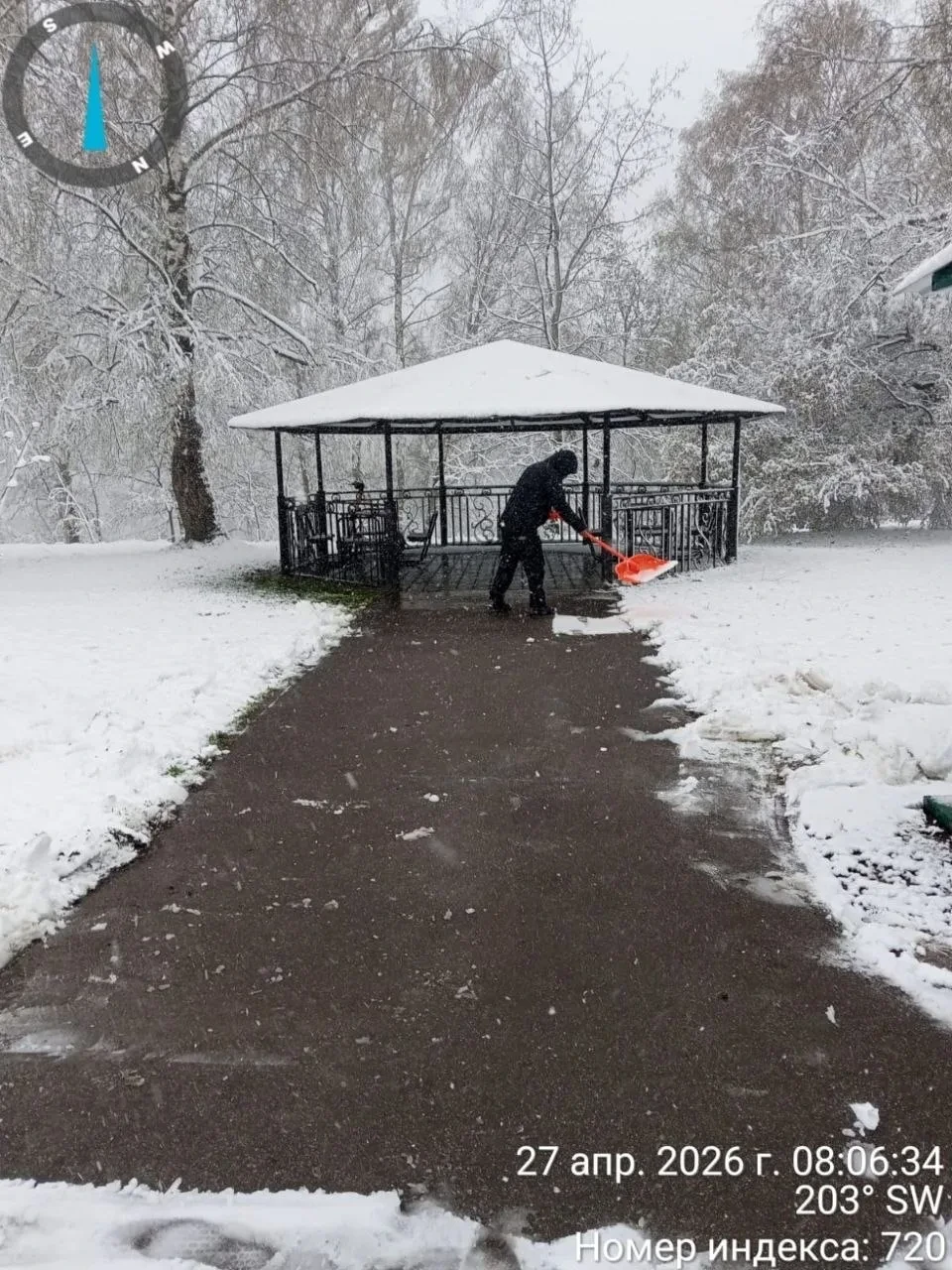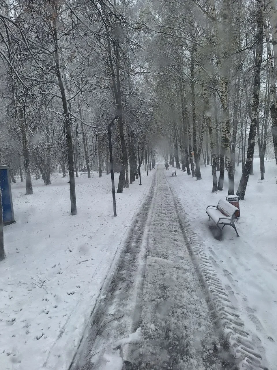 Однако, хотя выглядят заснеженные парки очень красиво, прогулки в них пока лучше отложить – насыщенный водой снег очень тяжёлый, и с деревьев регулярно падает не только сам снег, но и не выдержавшие нагрузки ветки. А в парке на Молодёжной и в Центральном парке Победы уже упали несколько деревьев.