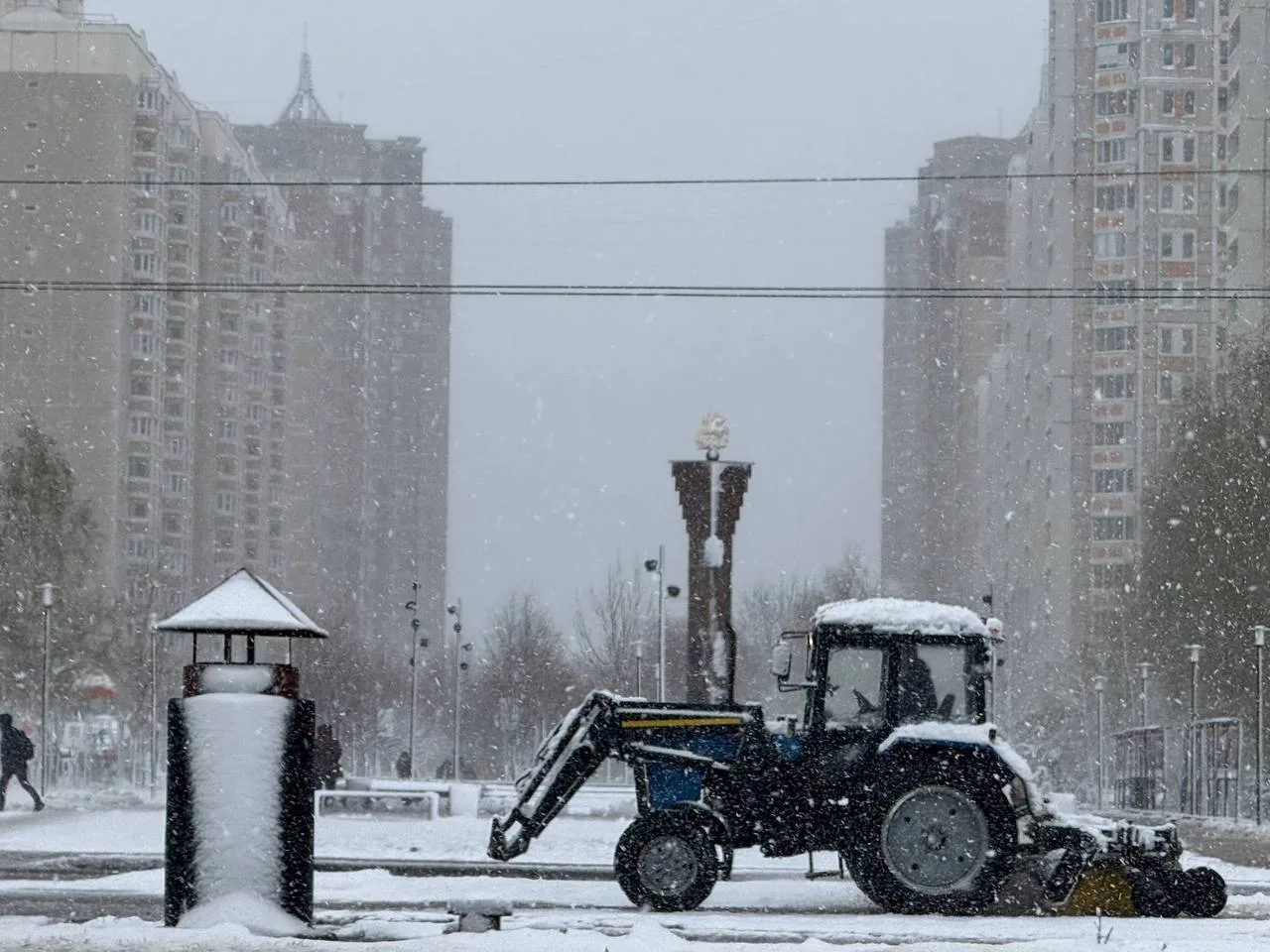 Ночью начался интенсивный снегопад. На дорогах и тротуарах образовался временный снежный покров.