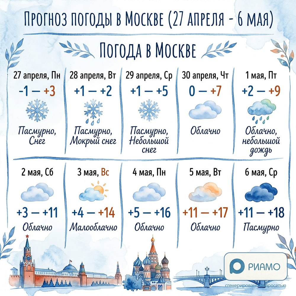 К концу недели в Москве ожидается резкое потепление: температура поднимется до +14°C, и в город вернётся почти весенняя, а местами уже по-настоящему летняя погода.