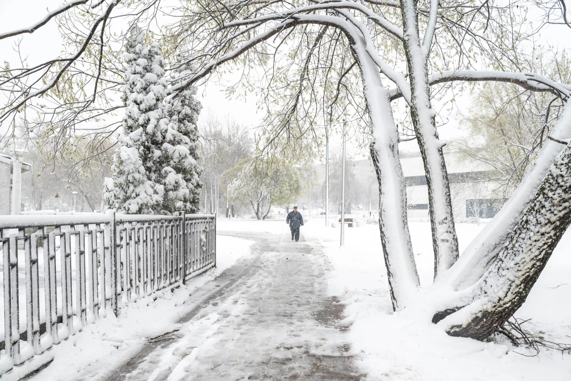 Пешеходам рекомендуем обходить шаткие конструкции и деревья. Не стойте под карнизами и балконами, избегайте узких проходов вдоль зданий - есть опасность схода мокрого снега.