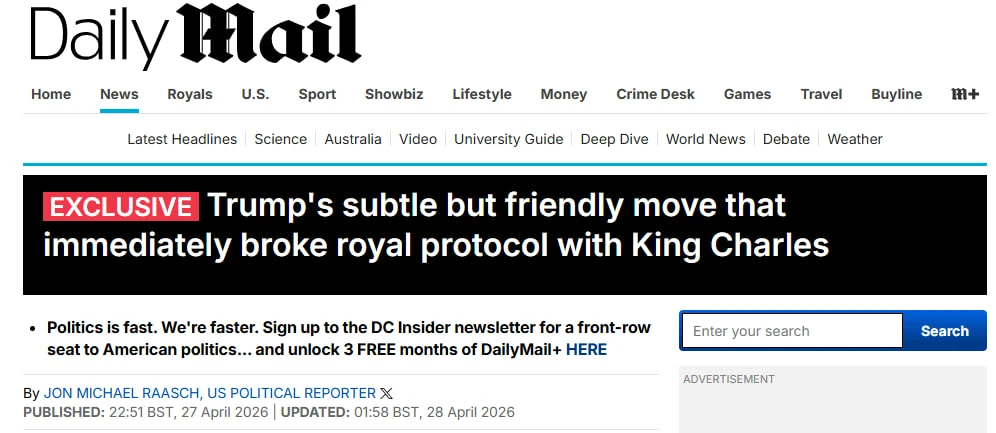 Похлопав по плечу короля Карла, Трамп тут же нарушил протокол, сообщает Daily Mail.