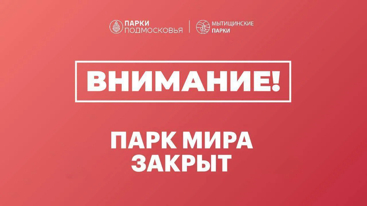 В связи с погодными условиями и для обеспечения вашей безопасности 28 апреля парк Мира временно закрыт