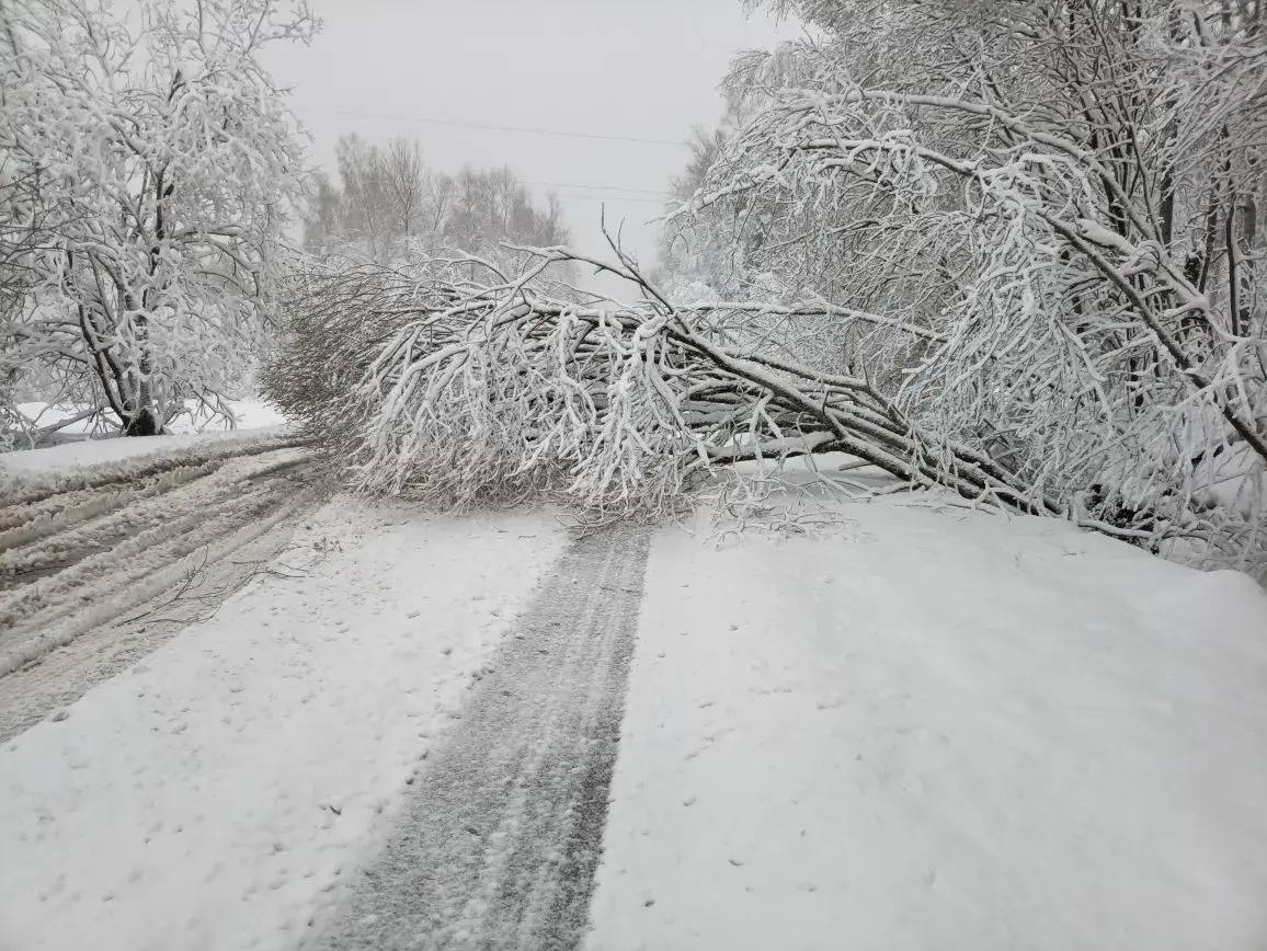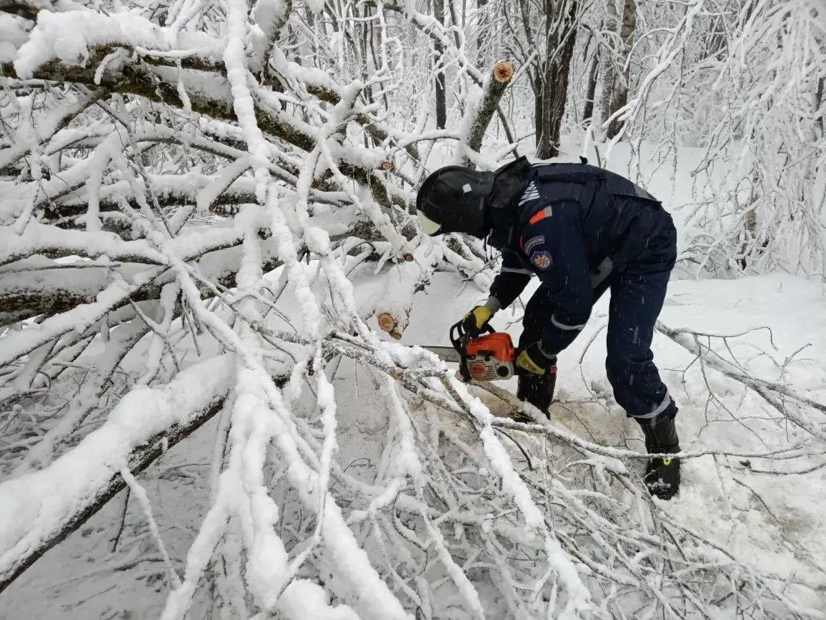 Сотрудники Мособлпожспаса продолжают ликвидировать поваленные от снега и шквалистого ветра деревья с дорог округа.