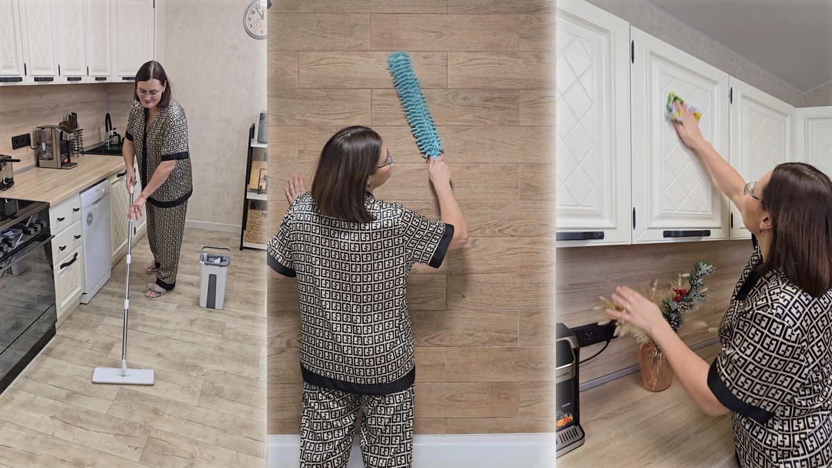 - На кухне — он отлично очищает плиту, столешницы, фасады шкафов и мойку.