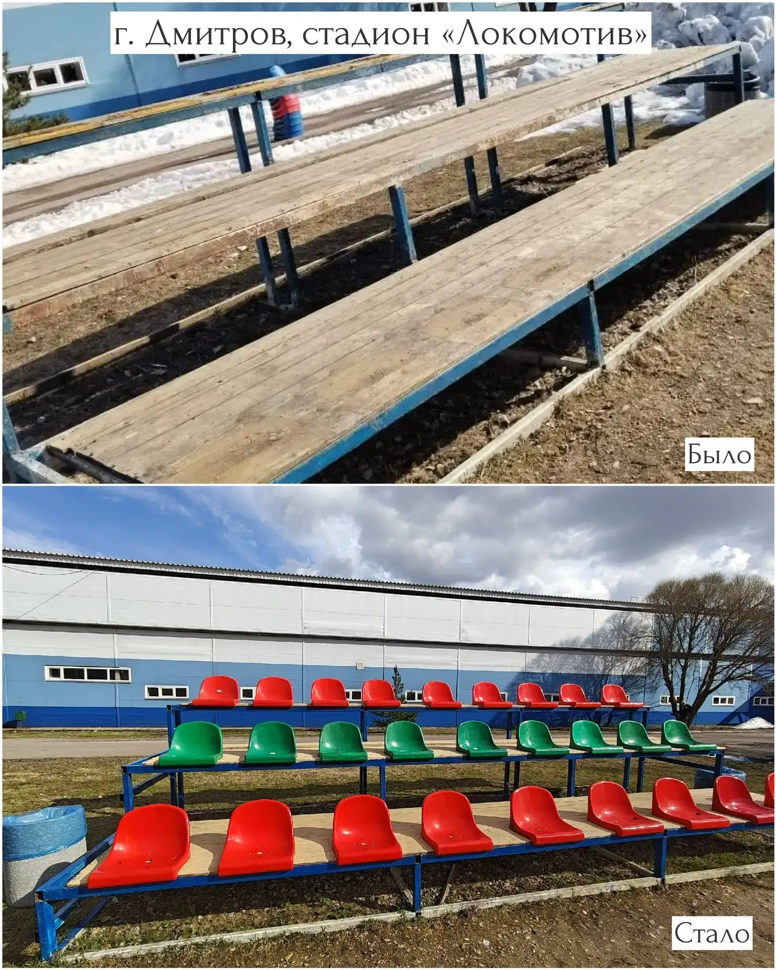 Дождитесь хорошей погоды и приходите заниматься спортом! Стадион ждёт вас.