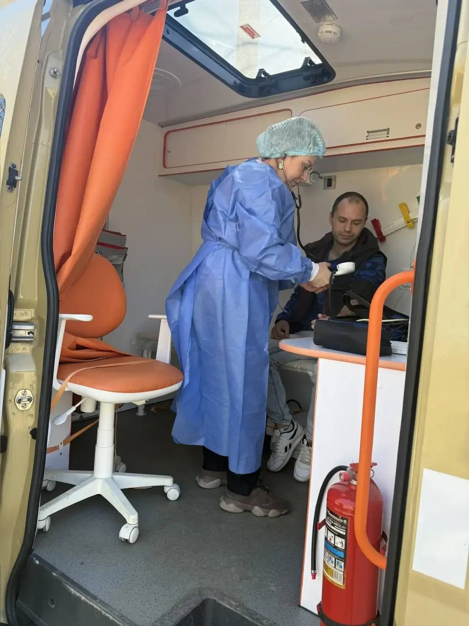 Медицинский автомобиль был полностью оснащен всем необходимым. В нем имелись электрокардиограф, портативный биохимический анализатор крови, а также измеритель концентрации глюкозы. Помимо этого, для пациентов были доступны устройство для проверки артериального давления, детские и взрослые весы, и ростомер.