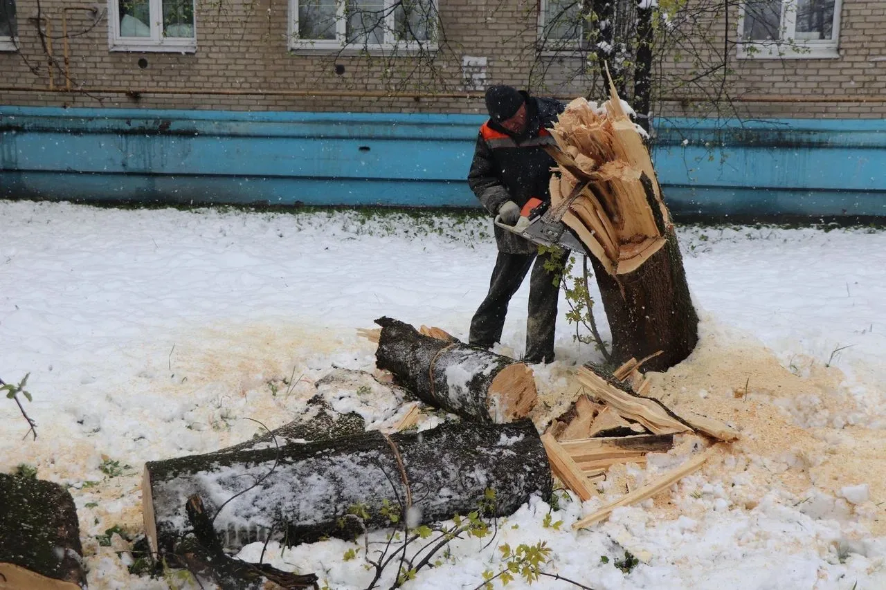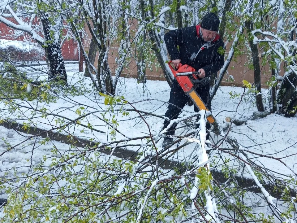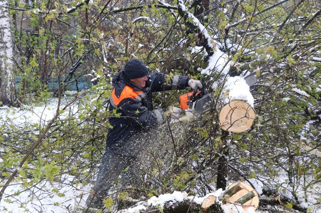 Бригады, сформированные на городских и сельских территориях, устранили поваленные деревья более чем по 50 адресам во дворах, на тротуарах и проезжей части.