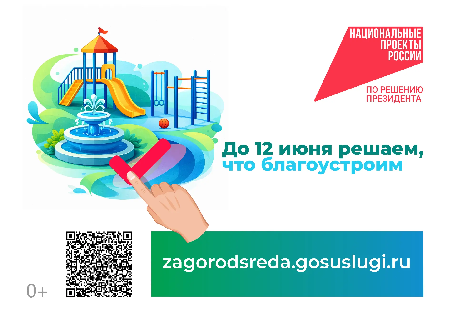 Сейчас открыто голосование за благоустройство новых территорий. Выбрать объект может любой житель 14+ лет до 12 июня на портале zagorodsreda.gosuslugi.ru: