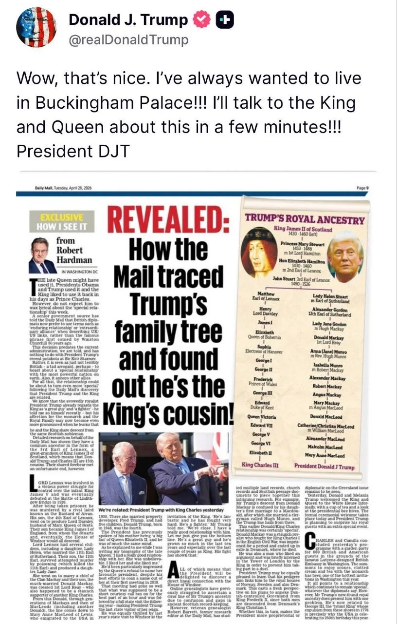 Трамп - о статье, в которой утверждается, что он является двоюродным братом короля: