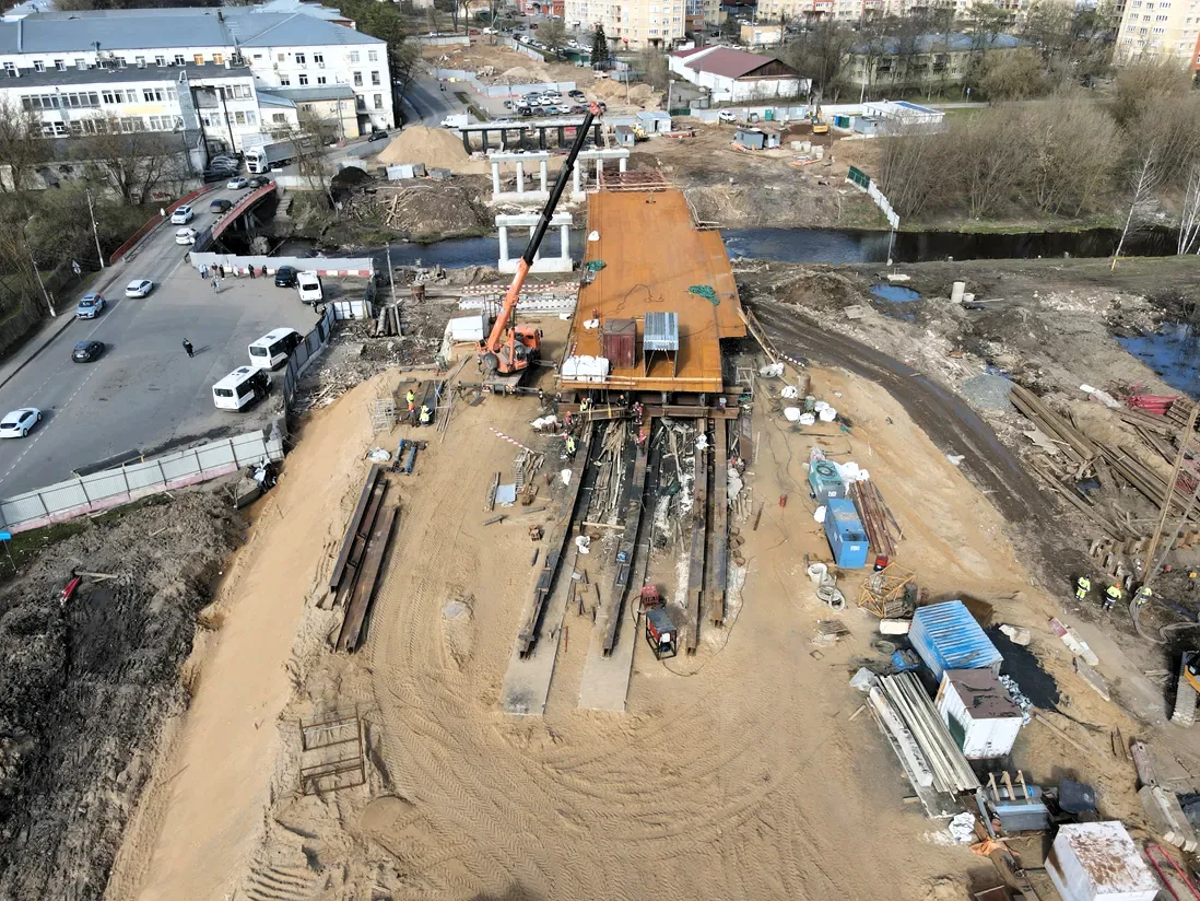 Строители приступили к надвижке пролетного строения на мосту через реку Клязьму в микрорайоне Пироговский.