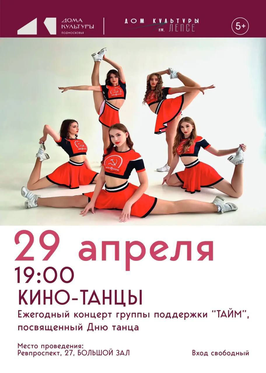 29 апреля в Доме культуры имени Лепсе состоится танцевальное шоу «КИНО-ТАНЦЫ», подготовленное участниками группы поддержки «ТАЙМ».