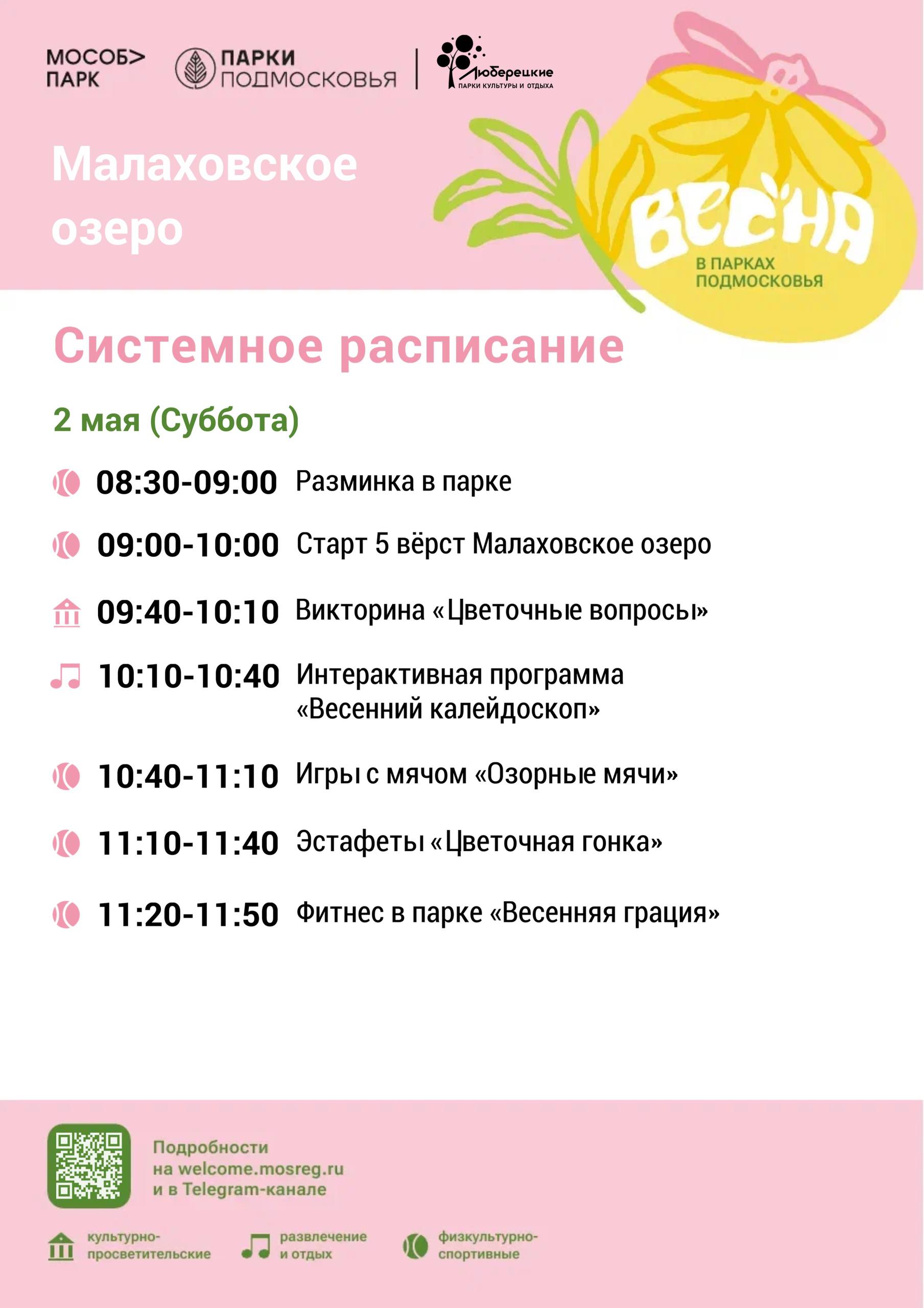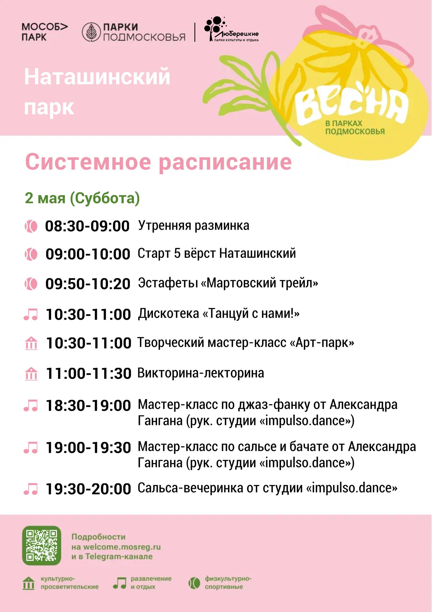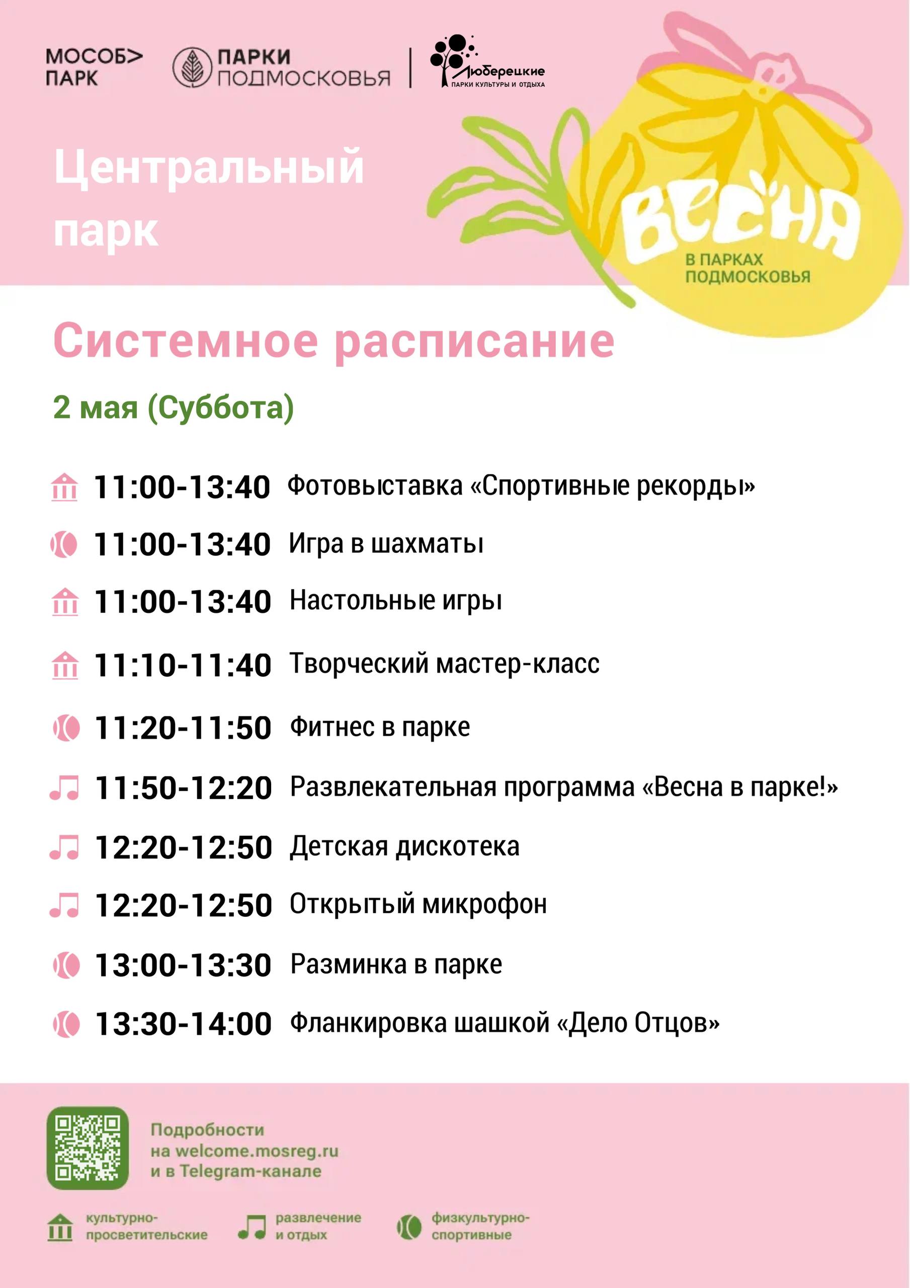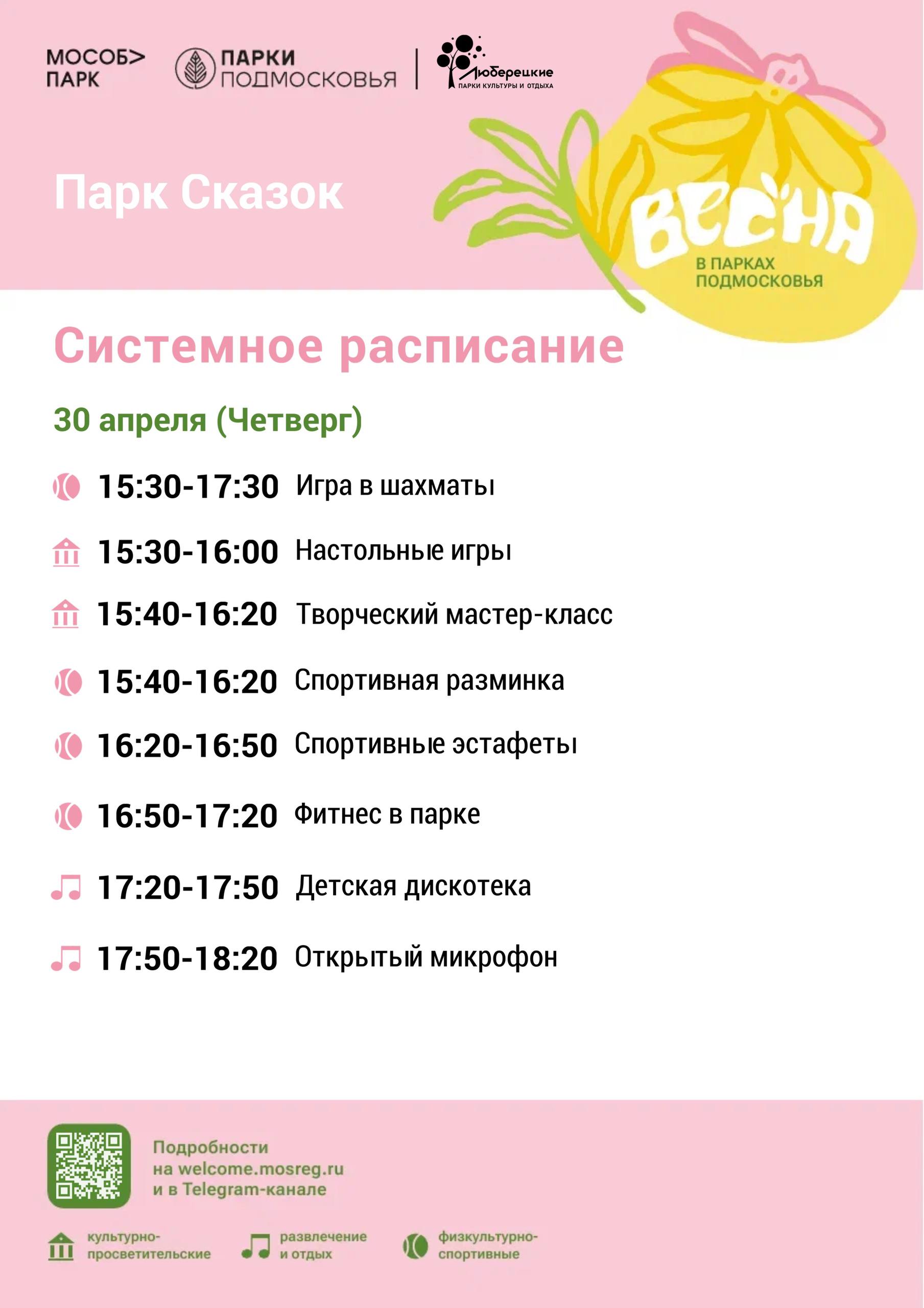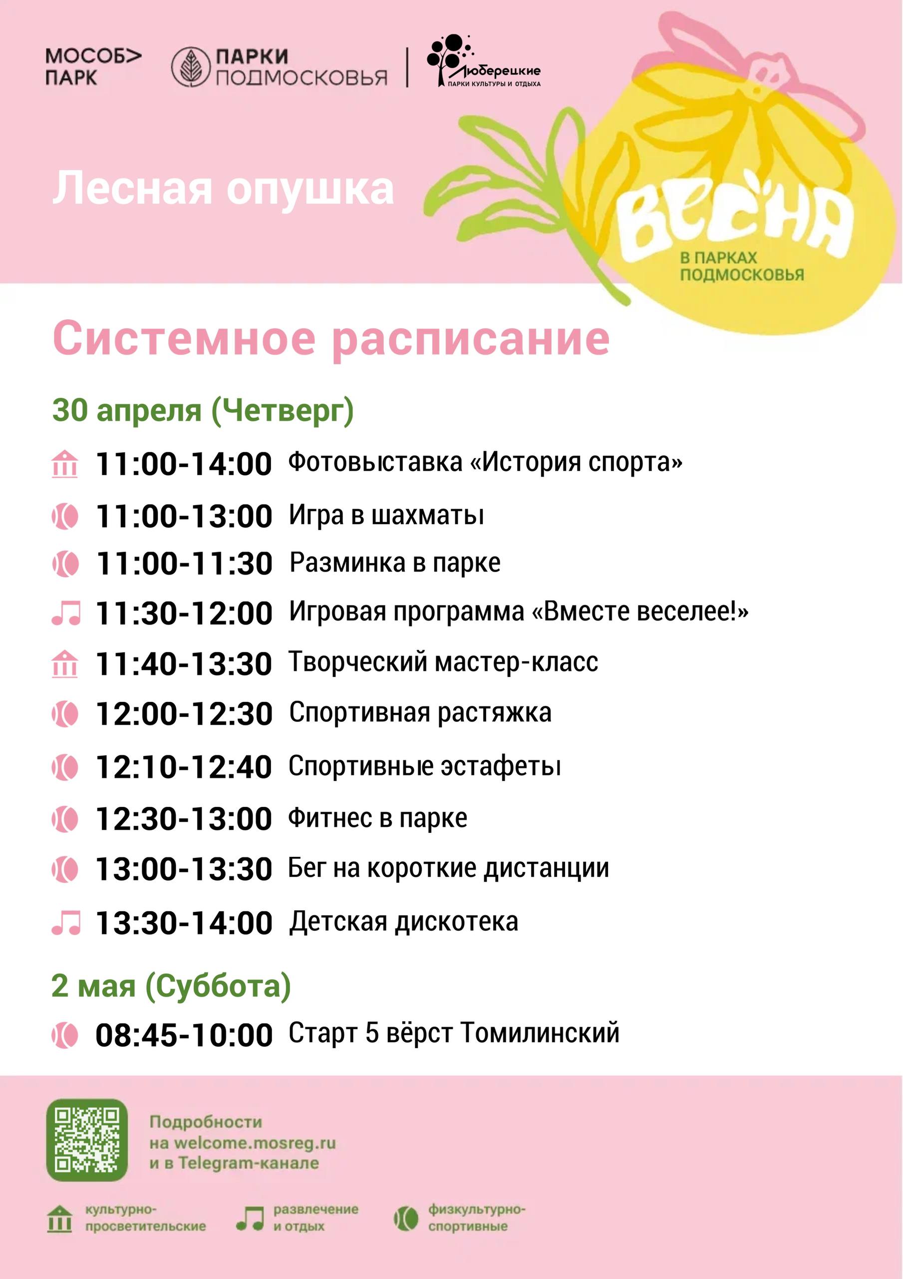 Системное расписание мероприятий в Люберецких парках с 27 апреля по 3 мая.