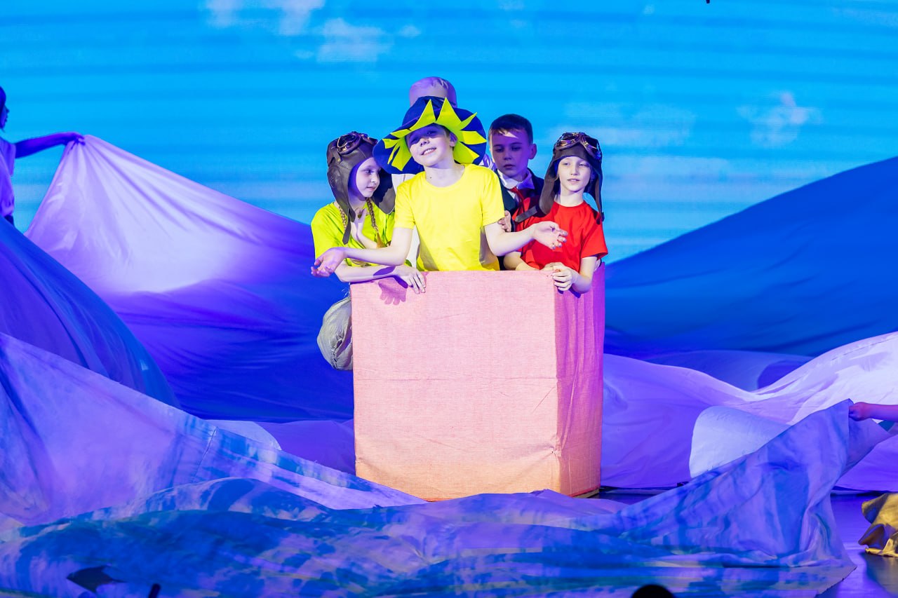 Действо завершается яркой сценой на фоне воздушного шара в голубом небе. Актёры исполняют финальную песню. Стихи к ней и другим песням написал автор-исполнитель Валентин Золотухин, а музыку он создал в соавторстве с нейросетью, поэтому спектакль получился музыкальным.