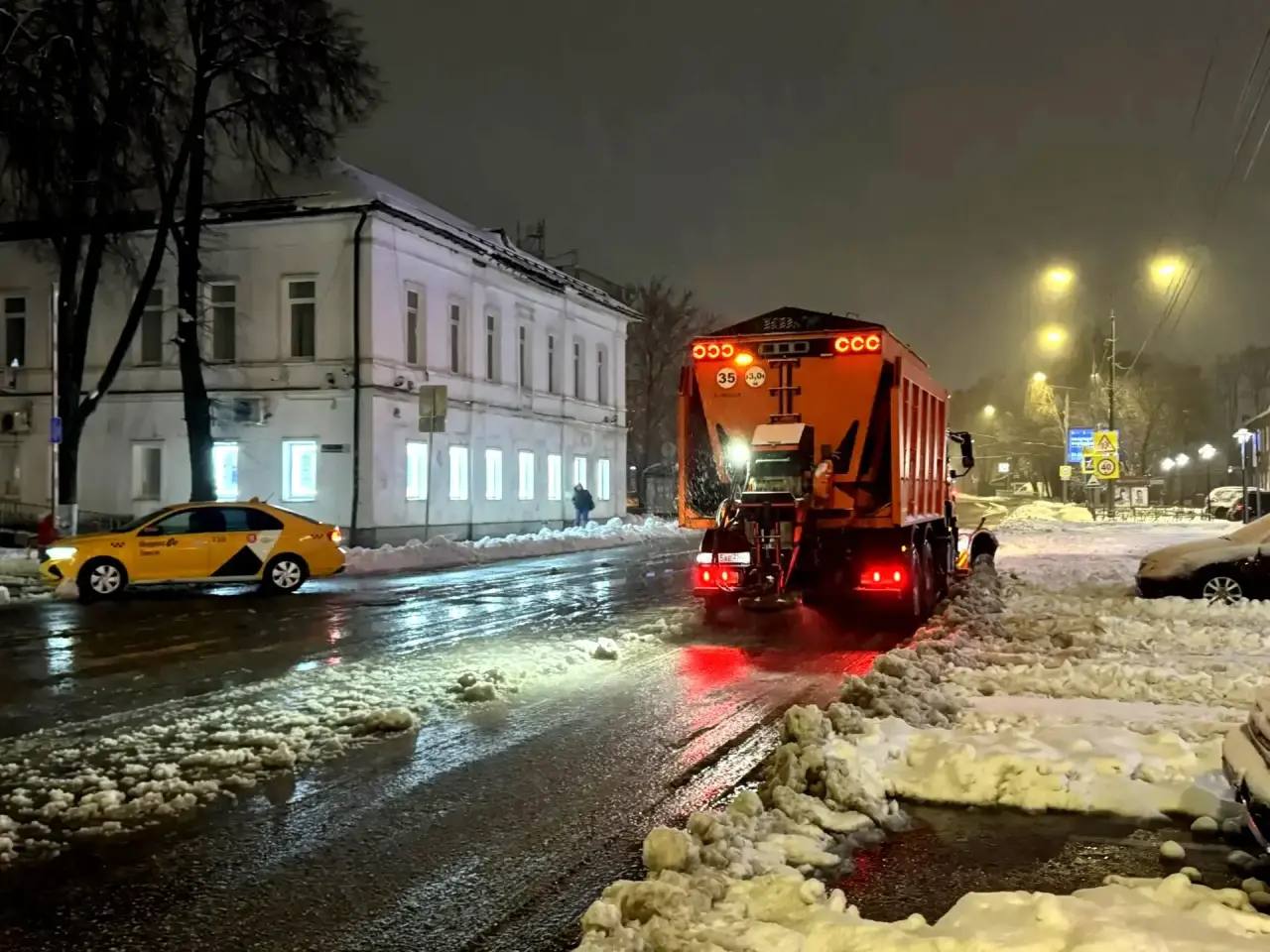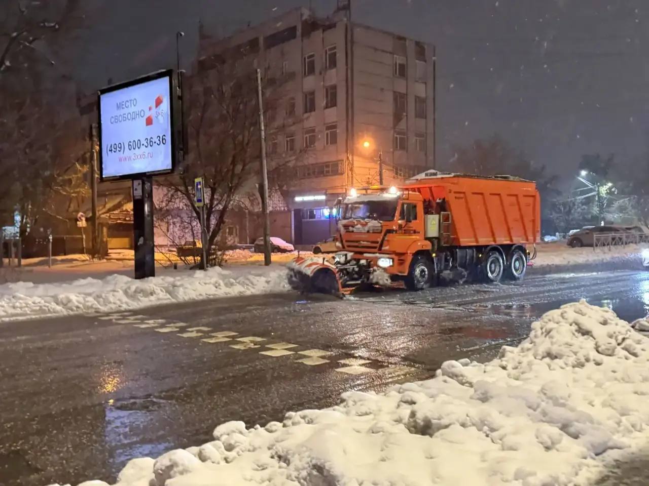 Сергиево-Посадские дорожные службы перешли на круглосуточный режим уборки из-за апрельского снегопада