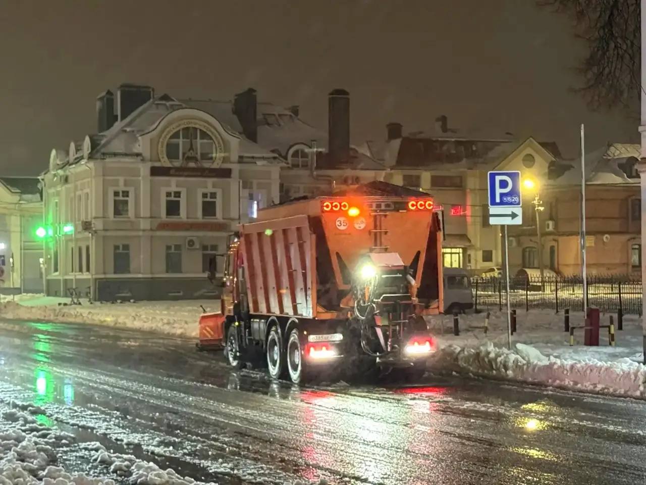 «В такую погоду днём убираем снег с дорог, чтобы избежать колейность. В ночное время дороги обрабатываются, чтобы предотвратить гололедицу», — отметил Денис Потапов.