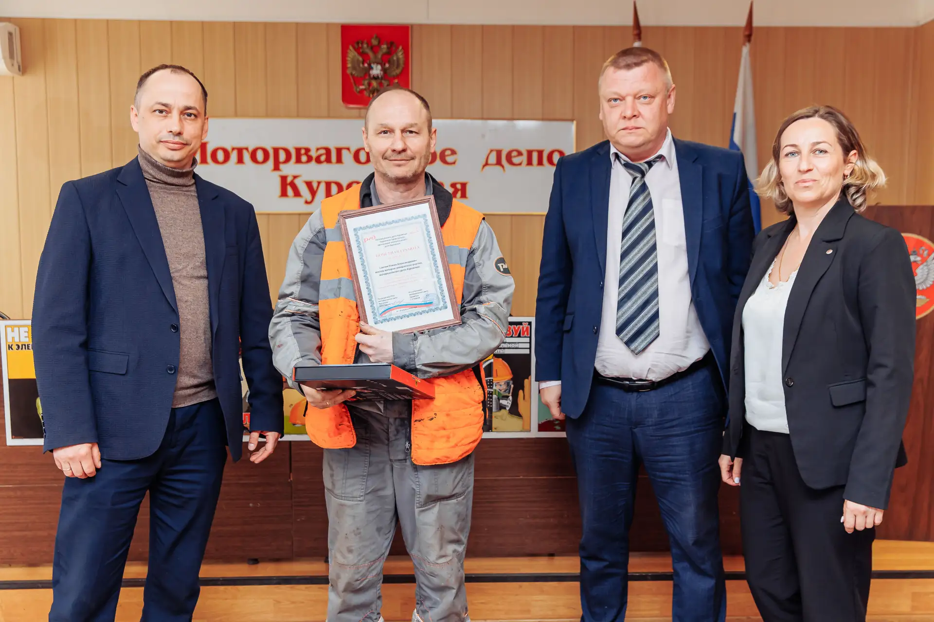 Лучшим сотрудникам депо вручили почетные грамоты.
