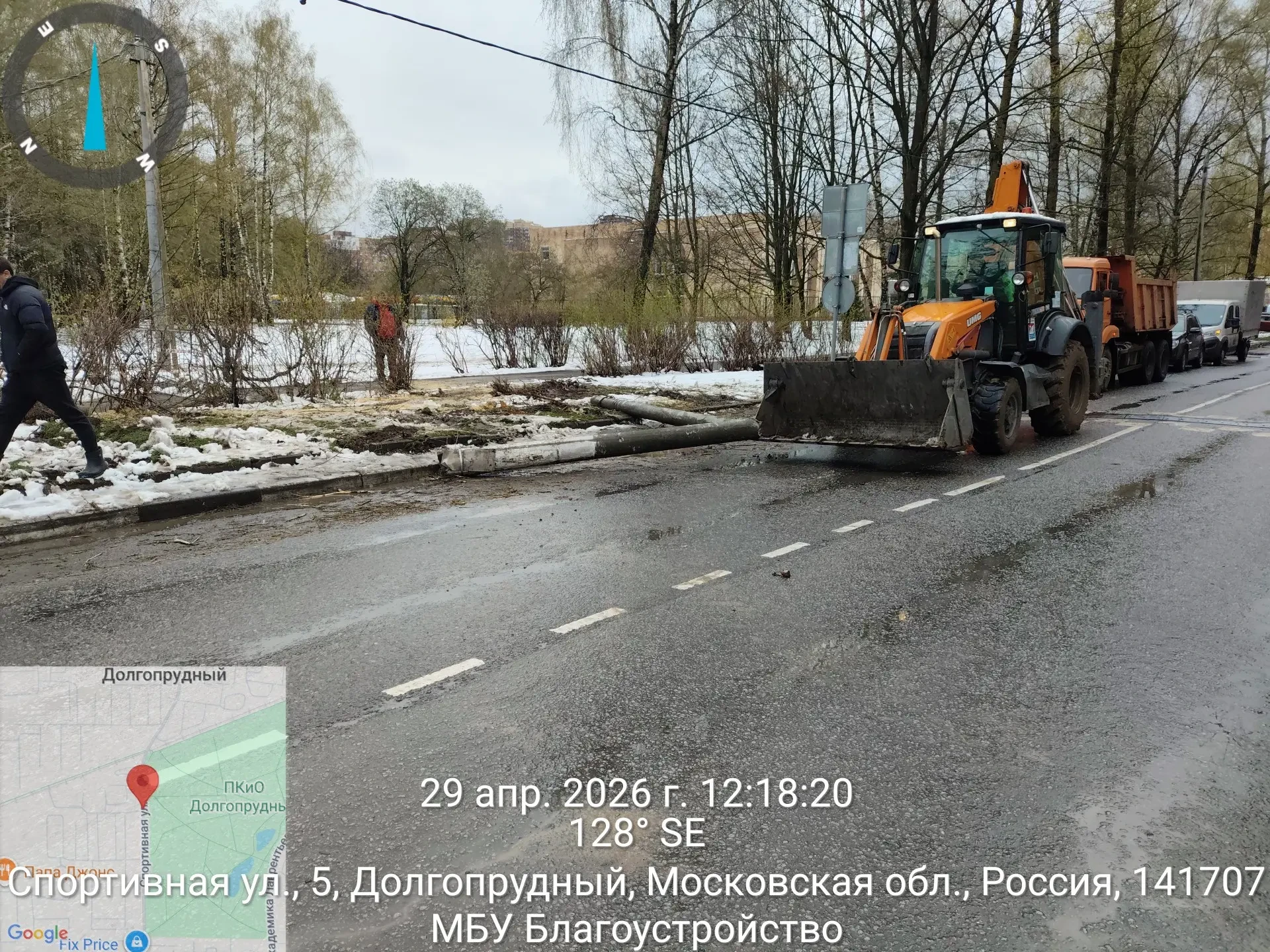 В Долгопрудном демонтировали упавшую опору уличного освещения на Спортивной