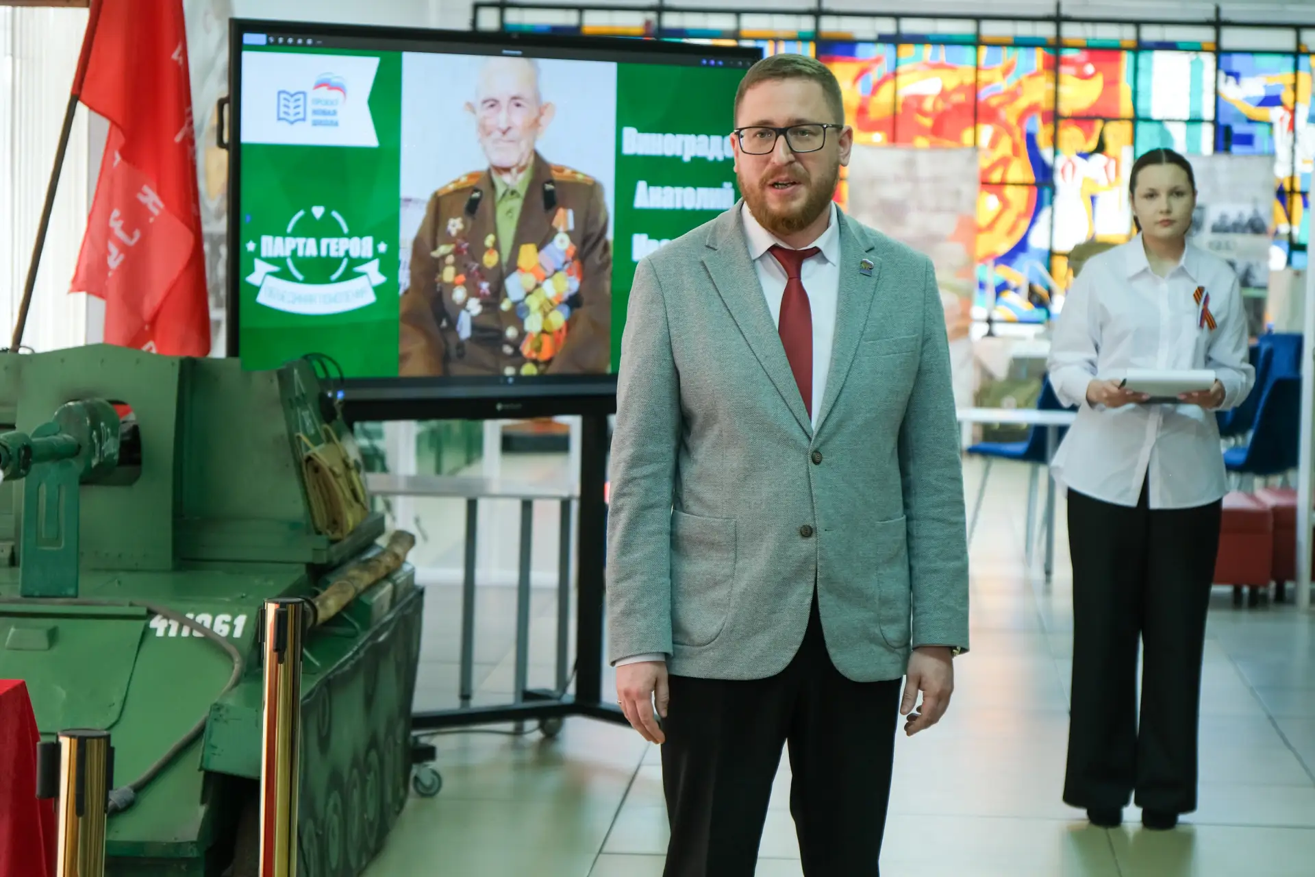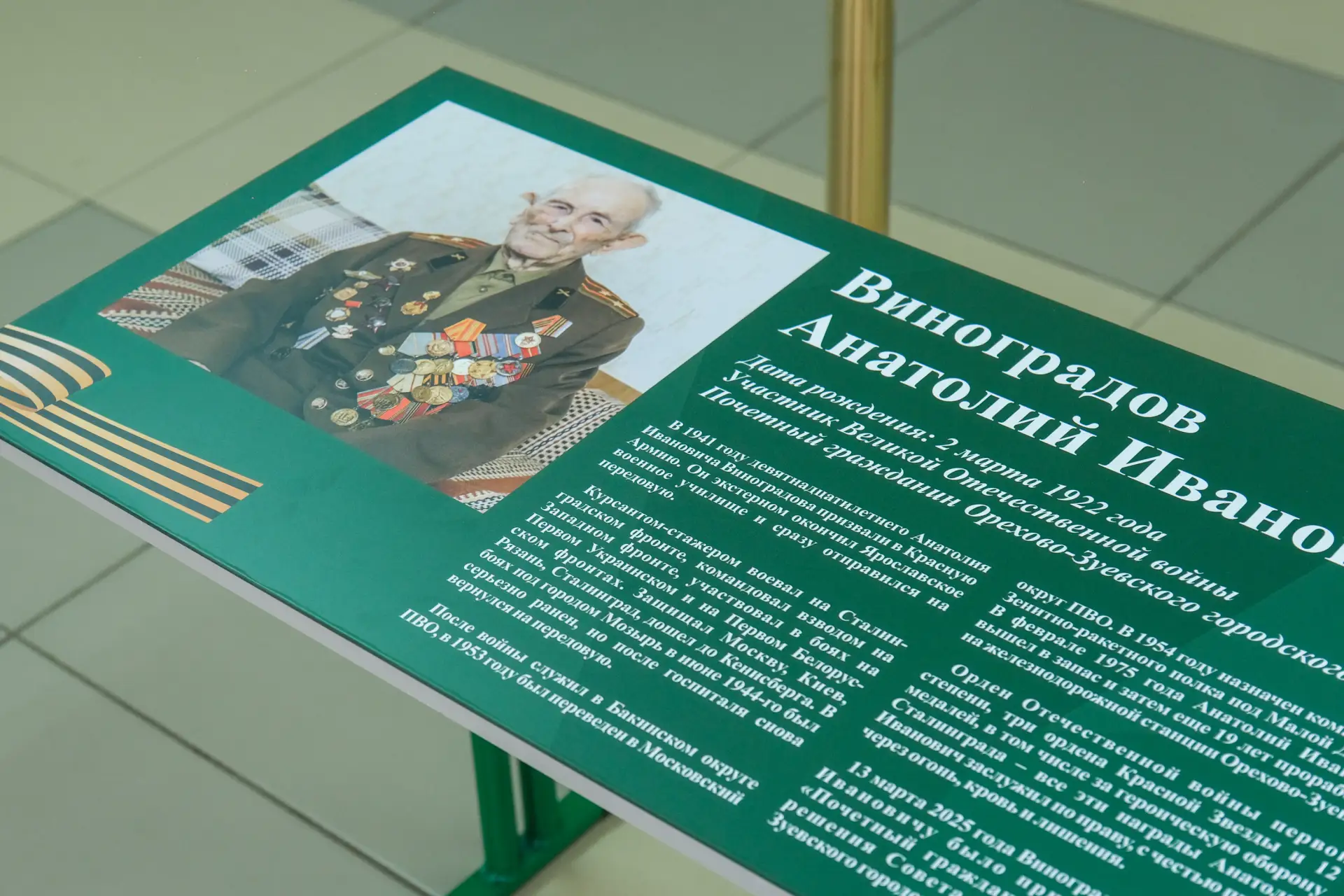 В гимназии №15 г. Орехово-Зуево состоялась торжественная церемония открытия «Парты Героя» в честь Анатолия Ивановича Виноградова – участника Великой Отечественной войны, Сталинградской битвы, Почетного гражданина нашего округа.