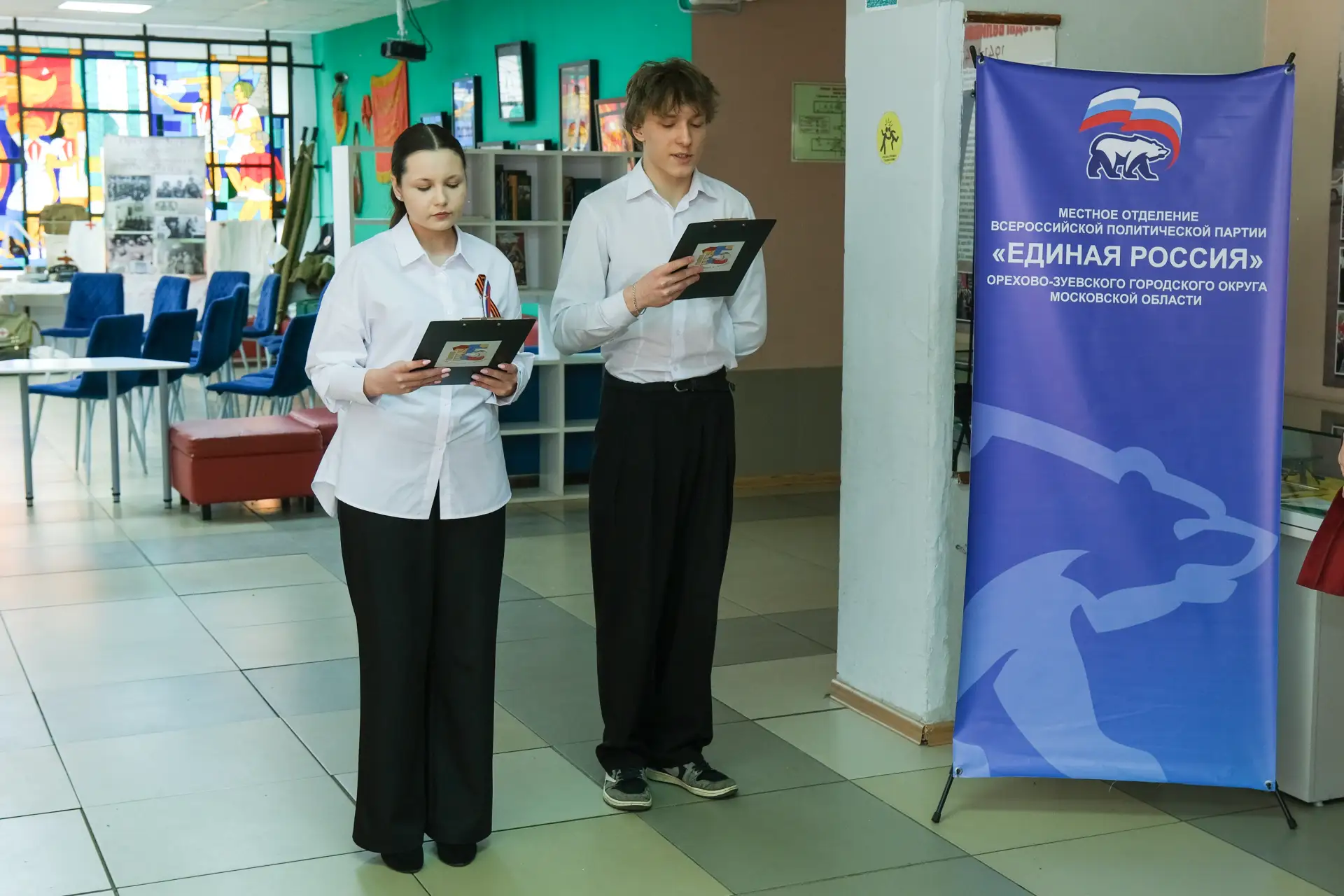 На церемонии открытия «Парты Героя» присутствовал член местного политического Совета Единой России, заместитель главы округа Данила Просвиров.