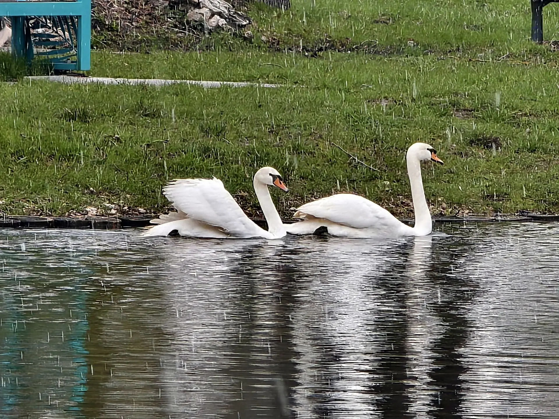 Пара белых лебедей Стёпа и Стеша вернулись домой.