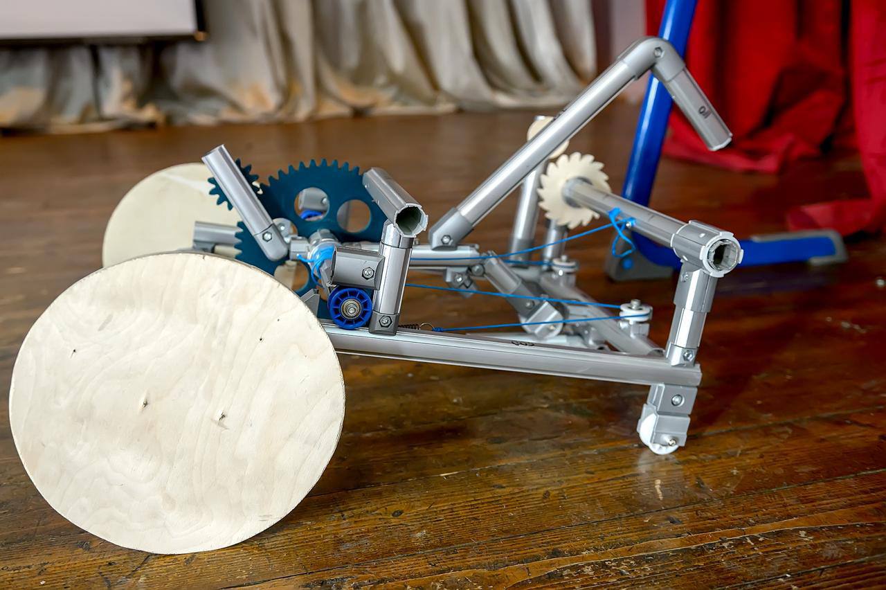 Участники собирали устройство в концепции каракури — механизма, основанного на точных инженерных расчётах и физических принципах, без использования электроники. Прототип предназначен для перемещения заготовок между соседними участками в реальном производстве.