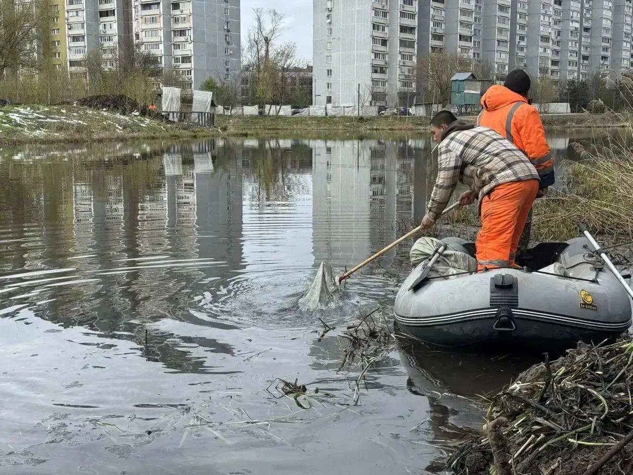 В связи с сообщением в социальной сети, сотрудниками МКУ «Управление экологии г.о. Мытищи» был осуществлен выезд на место по итогам которого установлено, что в ходе проведения работ по строительству набережной у подрядной организации произошла техническая неисправность строительной техники (разгерметизация гидравлического шланга), в результате чего произошло попадание гидравлической жидкости в акваторию.