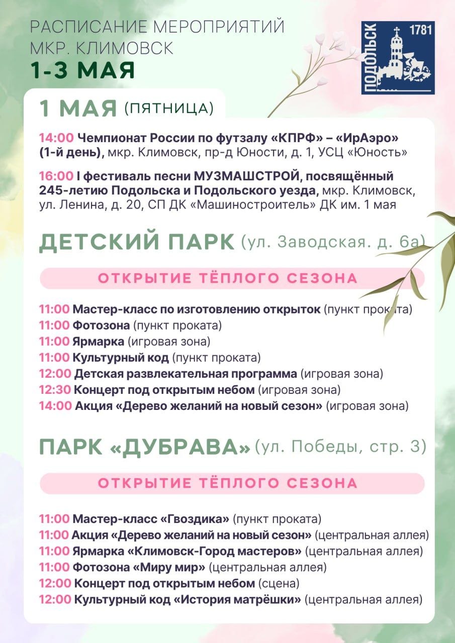 Завтра, 1 мая, открываем летний парковый сезон!