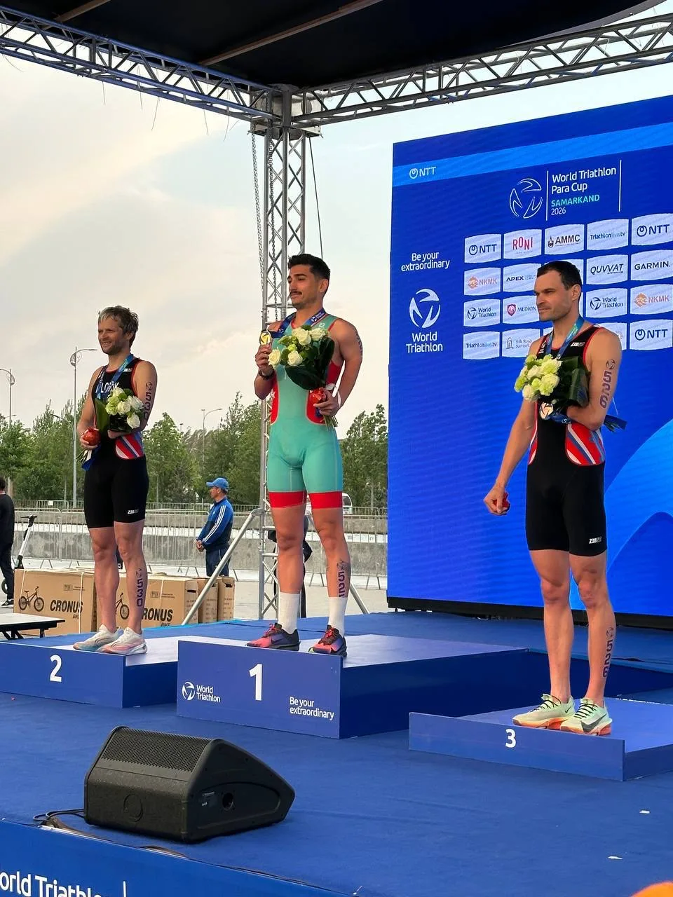 Сборная России блестяще выступила на этапе Кубка мира по паратриатлону в Узбекистане! 25 апреля в Самарканде наши атлеты преодолели спринтерскую дистанцию: 750 метров плавания, 19 км велогонки и 5 км бега.